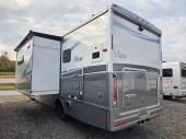 The perfect couples coach or for a family of three or four! You will be able to easily set up the queen Murphy+ bed when it's time for bedtime while the kids or your guests sleep on the 49" x 75" cabover bunk. You can also choose the optional low profile front cap with storage if you do not need the added sleeping space. Everyone can get cleaned up in the full bathroom that has a space-saving sliding door and large wardrobe along the very rear that features a gear garage below. Create yummy meals and snacks using the kitchen appliances and the flip-up counter, then dine at the fold-down table with chairs or eat seated on the theater seating with lap tables nearby on either side.