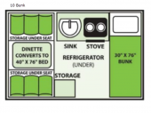 Bunkhouse, 13 ft 0 in in length, weighs 1180 lbs lbs, sleeps up to 2, many colors ...more