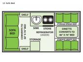 Front Kitchen, 13 ft 0 in in length, weighs 1300 lbs lbs, sleeps up to 2, many colors ...more