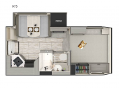 Rear Bath, 19 ft 11 in in length, weighs 3212 lbs lbs, sleeps up to 4, , many colors ...more
