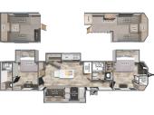 Two Full Baths, Two Entry/Exit Doors, 42 ft 4 in in length, weighs 10162 lbs lbs, sleeps up to 5, , many colors ...more
