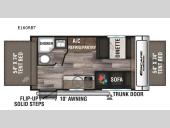Rear Bath, 18 ft 10 in in length, weighs 2696 lbs lbs, sleeps up to 6, many colors ...more