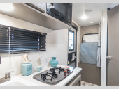 Rear Bath, 18 ft 7 in in length, weighs 3190 lbs lbs, sleeps up to 7, many colors ...more