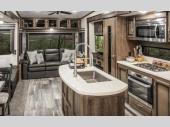 Rear Living Area, Kitchen Island, 37 ft 10 in in length, weighs 10790 lbs lbs, sleeps up to 4, , many colors ...more