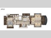 Front Kitchen, Rear Bedroom, 43 ft 5 in in length, weighs 16099 lbs lbs, sleeps up to 6, , many colors ...more