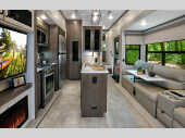 Rear Living Area, Kitchen Island, 39 ft 10 in in length, weighs 12330 lbs lbs, sleeps up to 4, , many colors ...more