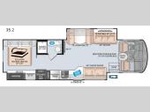 The Thor Miramar 35.2 combines luxury and convenience with a full-wall slide for expansive living space and a Tilt-A-View™ king bed for ultimate relaxation on the road. -