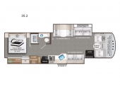 The Thor Miramar 35.2 combines luxury and convenience with a full-wall slide for expansive living space and a Tilt-A-View™ king bed for ultimate relaxation on the road. -