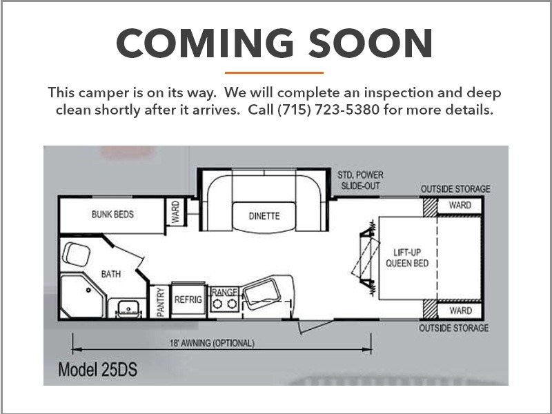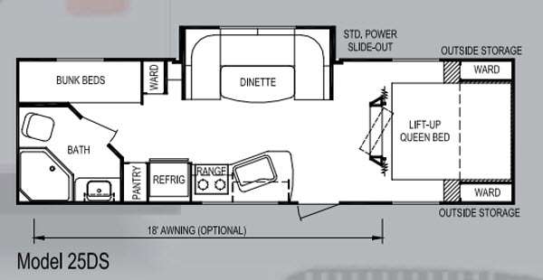 Single Slide Koala Travel Trailer, Rear Bath w/Shower, Toilet, Lav., Ward., Bunk Beds, Pantry, Booth Dinette Slide, Front Lift-Up Queen Bed, Double Wardrobes, Kitchen Sink, 2-Burner Range, Refrigerator, Overhead Cabinets Throughout, Outside Storage & Much More. Available Options May Include: 18' Awning.