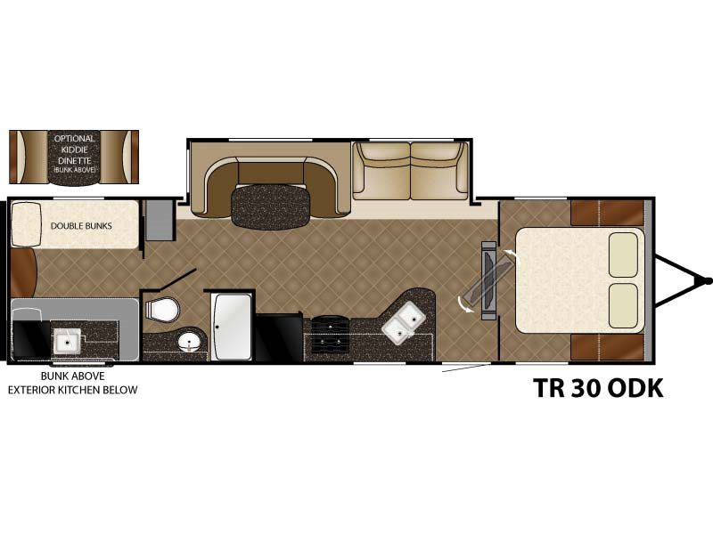 You can choose a kiddie dinette in place of the bottom bunk on the right side of the bunk room, and more!