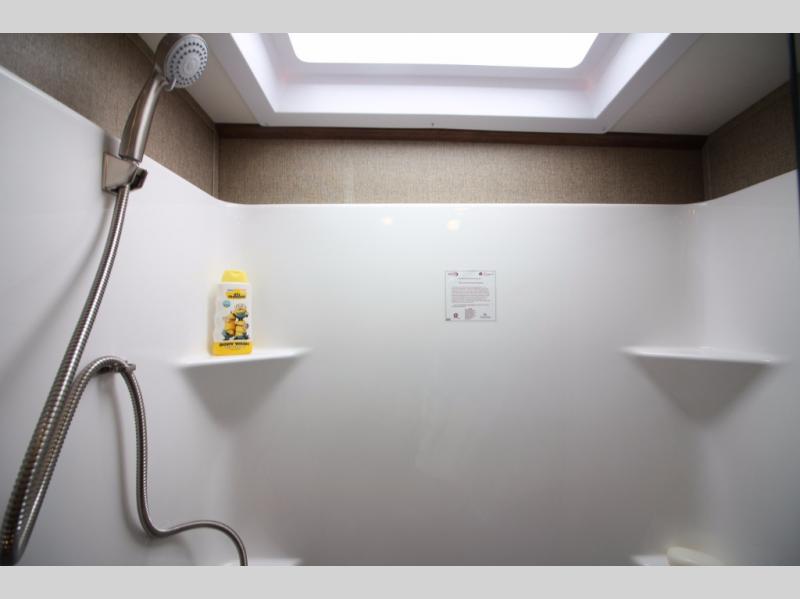 The front private bedroom provides a comfortable retreat away from the hustle and bustle of the noise in the main living area. There is a queen bed slide with nightstands, or an optional king. A dresser and desk can be found along the curb side wall opposite the bed slide, plus there is a full wall wardrobe with sliding doors including a space that has been prepped for a washer and dryer if you like as well, plus so much more!