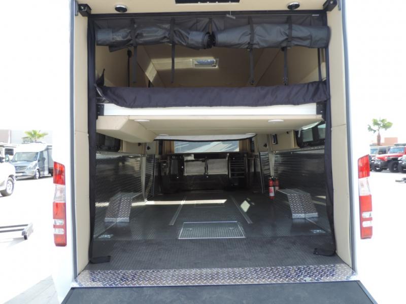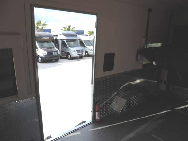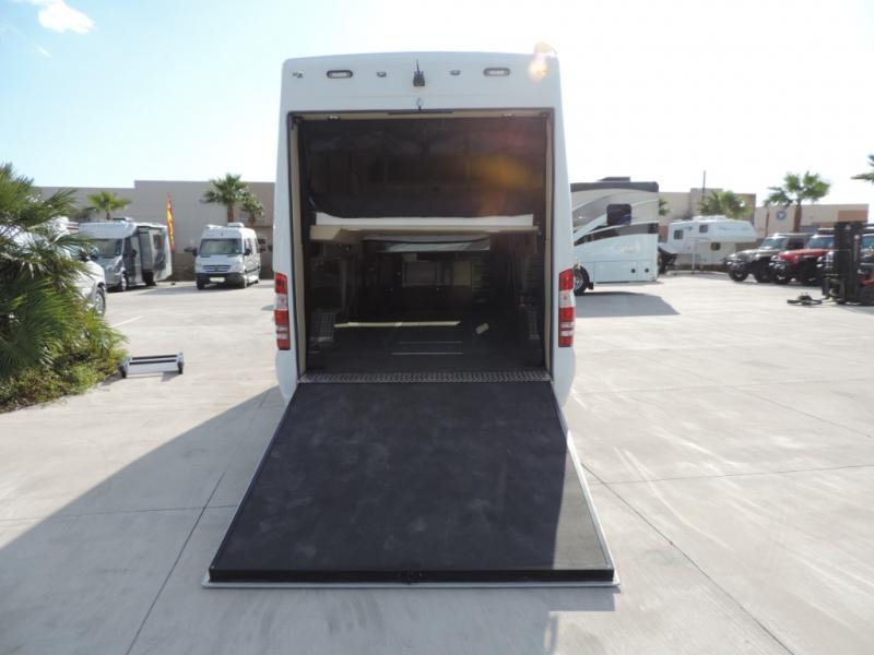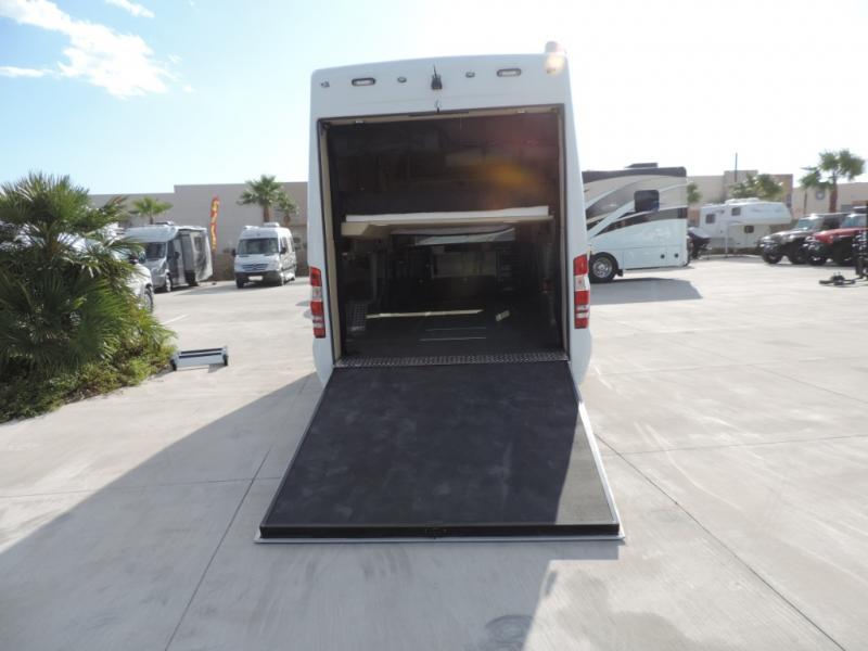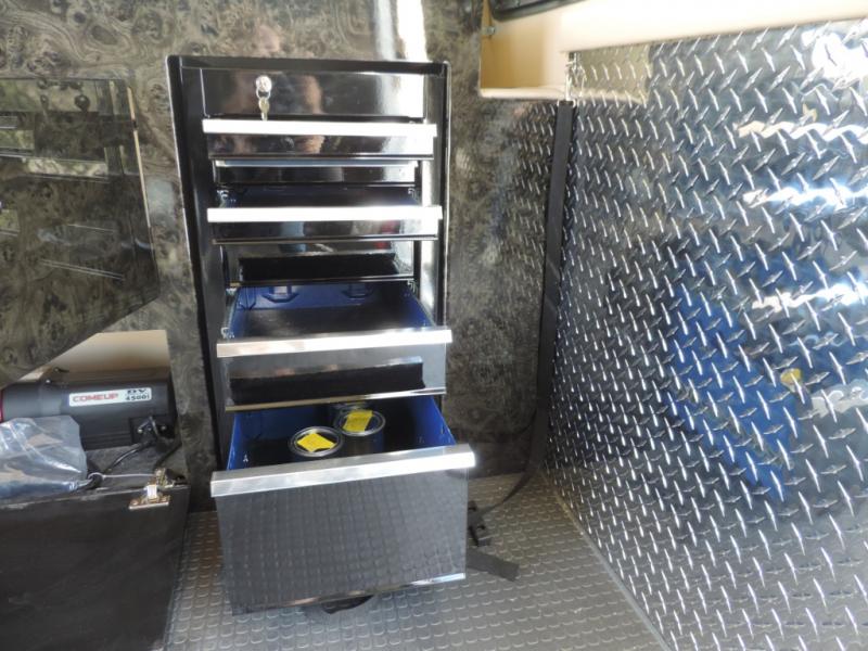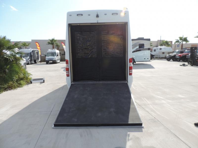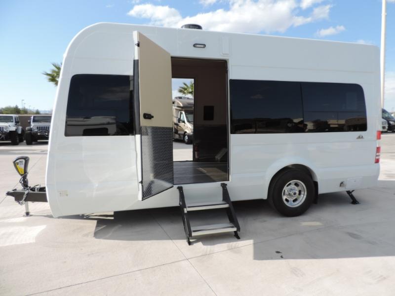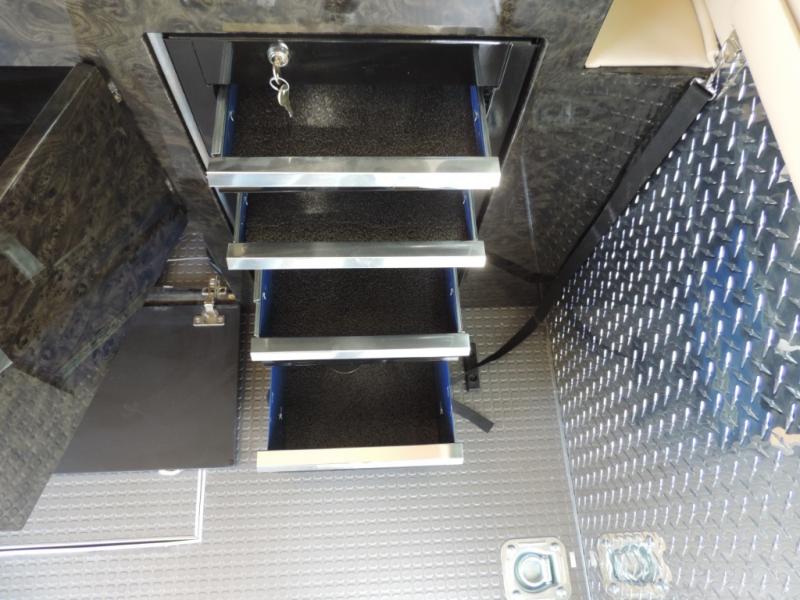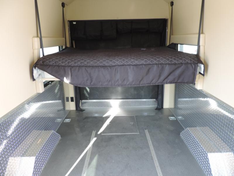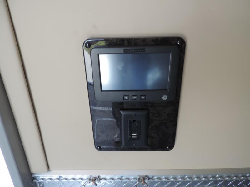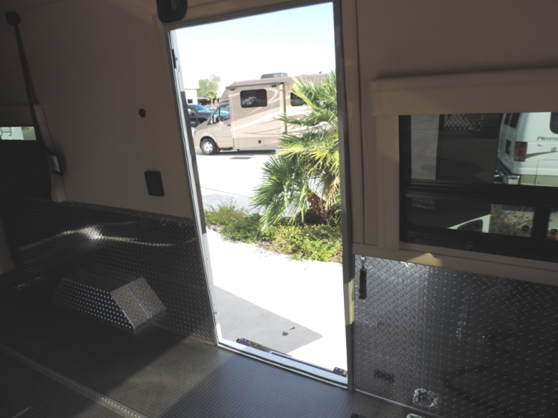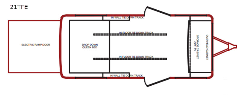Looking for a travel trailer with an electric ramp door to load and unload your cargo, in-floor and in-wall tie down tracks to secure your load, and storage with the option to add a TV to watch from the drop-down queen bed? The bed even converts into sofa seating during the daytime if you like, plus the electric ramp door is controlled by a remote making it convenient and easy when traveling. You will also find a wireless camera system both inside and outside, and a traditional travel trailer front on this model. You can even close the window shades for privacy, and dim the LED ceiling lights. This exterior length of this model is 21'3".