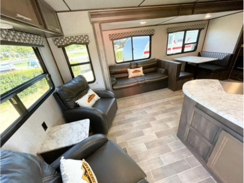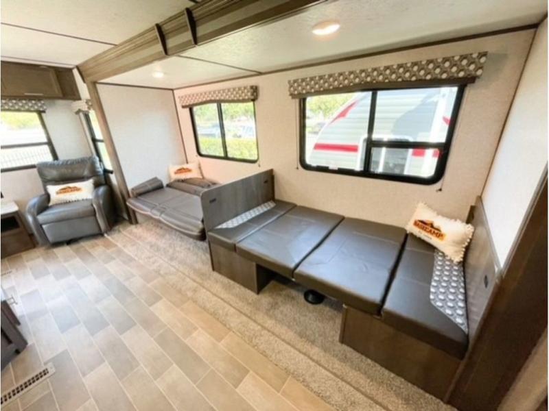 Each Coleman Lantern model by Dutchmen provides amenities and value beyond your imagination. With conveniences such as the thermoformed countertops in the kitchen, a Rest Easy mattress, Everwear luxury furniture, and a solar power charging connection, it is no wonder that the Coleman Lantern is the choice of many outdoor enthusiasts. The under-bed storage is also a fantastic feature because it allows you to keep your belongings safely tucked away and out of sight. The campground awaits you and your family, so get out there in your new Coleman Lantern Series!