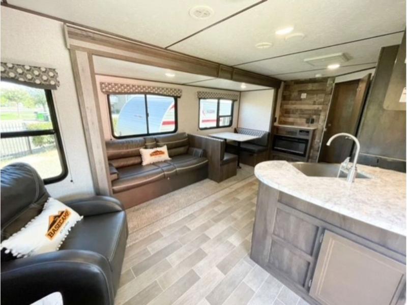 Check out this fun and comfortable Coleman Lantern Series travel trailer! With sleeping for five, a pass-through storage compartment, a pantry in the kitchen, and an end table between the two swivel rockers, you will have everything you need for many exciting excursions in the future. The two entry doors will come in handy while you are playing outdoors and want to enter the trailer quickly, and with a large slide, the interior will feel spacious as you gather together each evening for dinner.