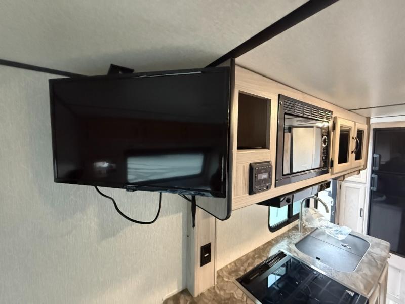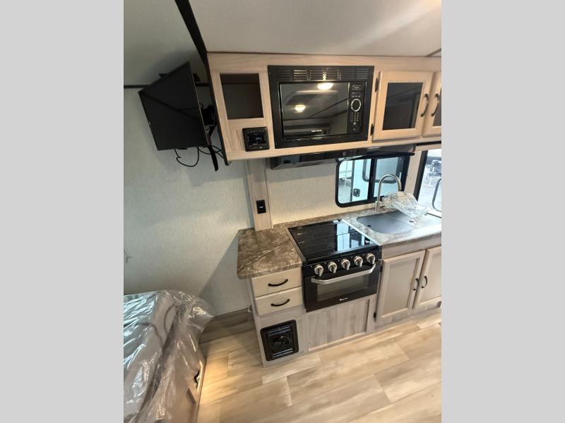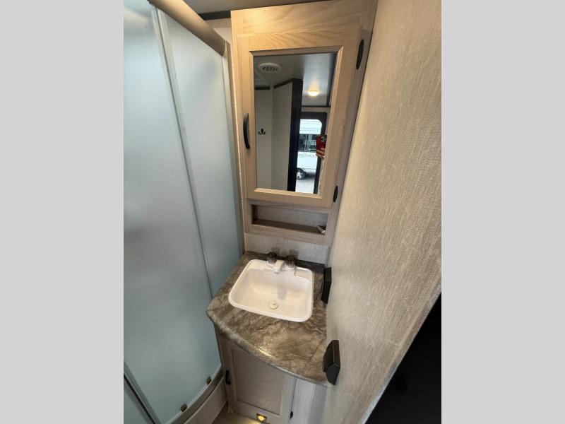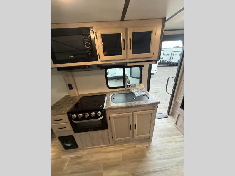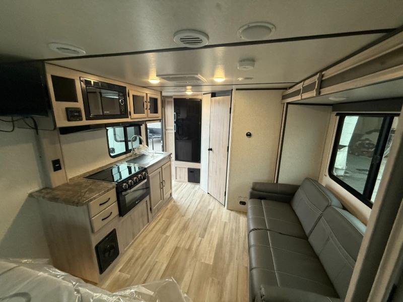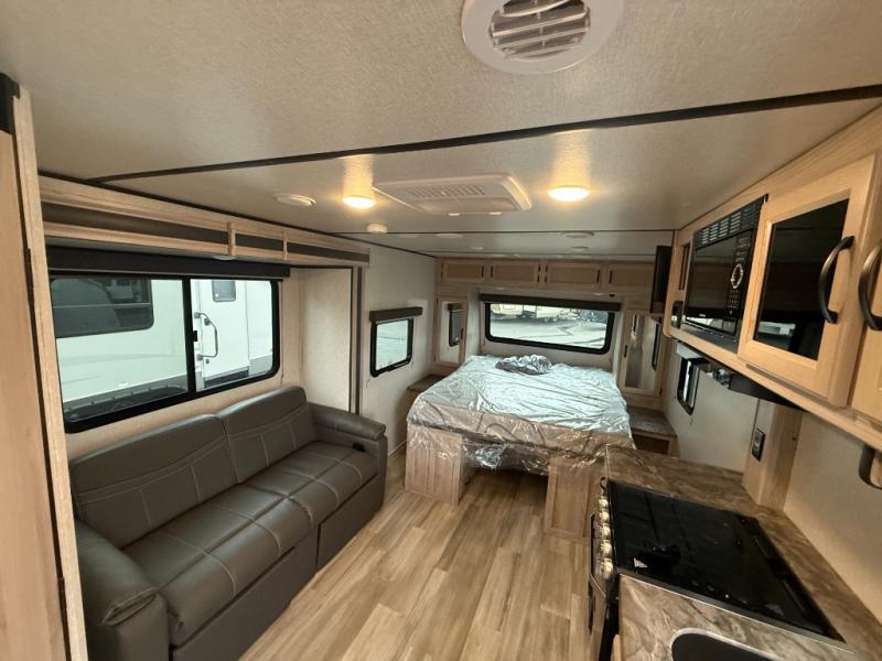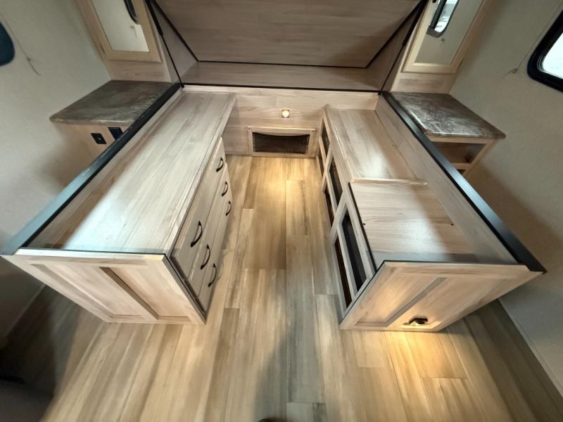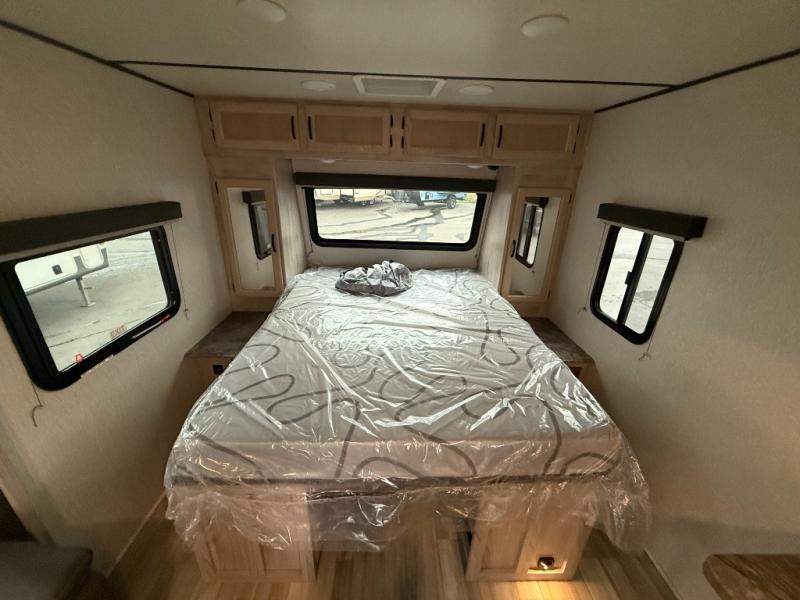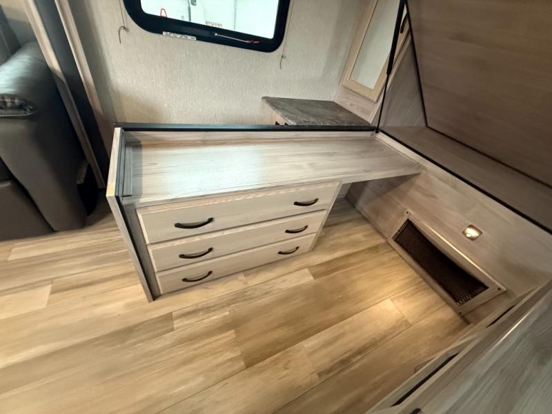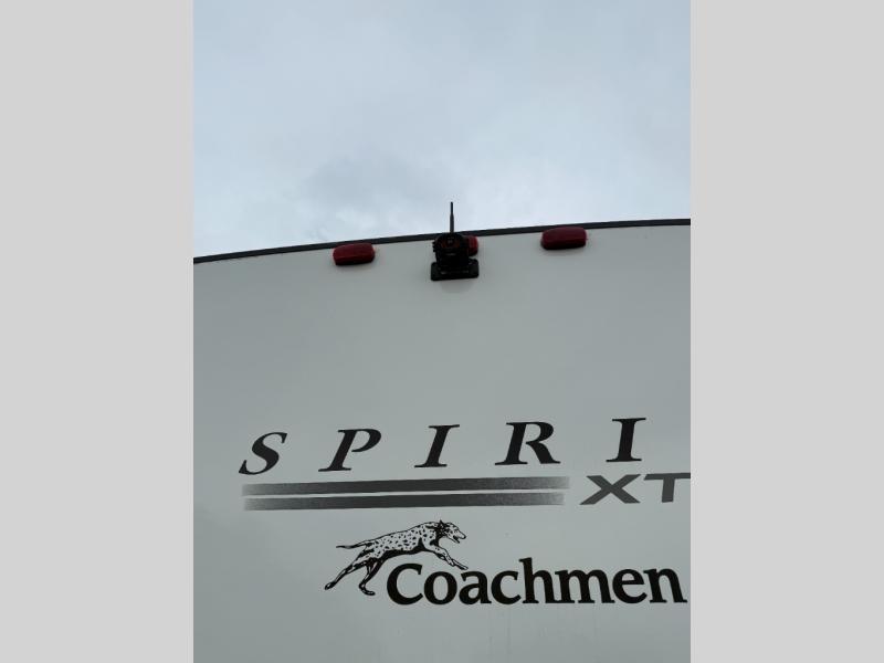 Each Spirit XTR travel trailer by Coachmen is constructed with a laminated, aluminum framed floor, sidewalls and rear wall, plus Azdel composite panels in place of Luaun plywood, and a Tufflex PVC roof membrane to provide a lightweight, sturdy and easy to tow trailer by a smaller tow vehicle. The interior includes lumber core cabinets stiles, mortis and tenon cabinet doors, and seamless thermo foil wrapped countertops for easy care. You will also find the MAX BED storage feature which offers a walk-through area under the bed with drawers, extra storage for pillows, blankets and shoes, plus a padded seat allowing you to easily put on your shoes each morning. A few more features you are sure to appreciate include a wireless phone charger, motion activated floor lights, a battery disconnect switch and a digital level. Make your selection today!