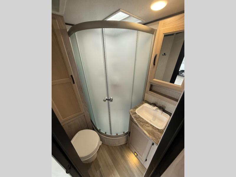 Travel with your spouse, family, or friends in this lightest Spirit to date! This open concept and smaller trailer makes it easy to load, unload and tow for quick a get-away! You will have a queen bed to sleep on at night and a sofa for one more guests, plus you can dine at the free-standing table as well as move it to your liking. Everyone can stay clean with a full bathroom, and fed with all the kitchen amenities. You will also appreciate the pass-through storage motion activated light and power awning.