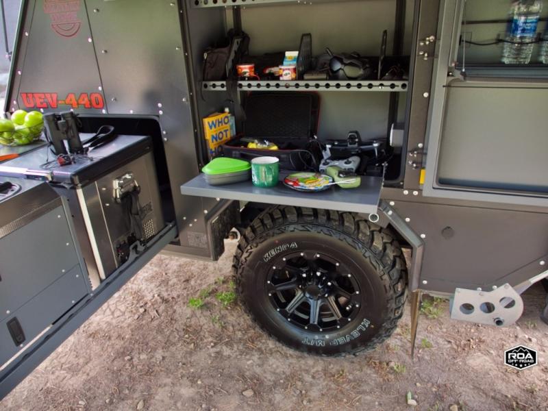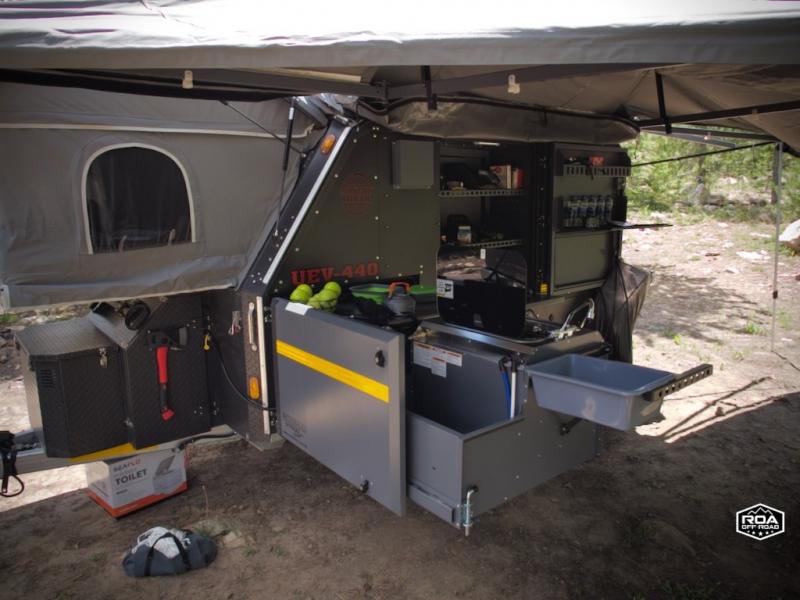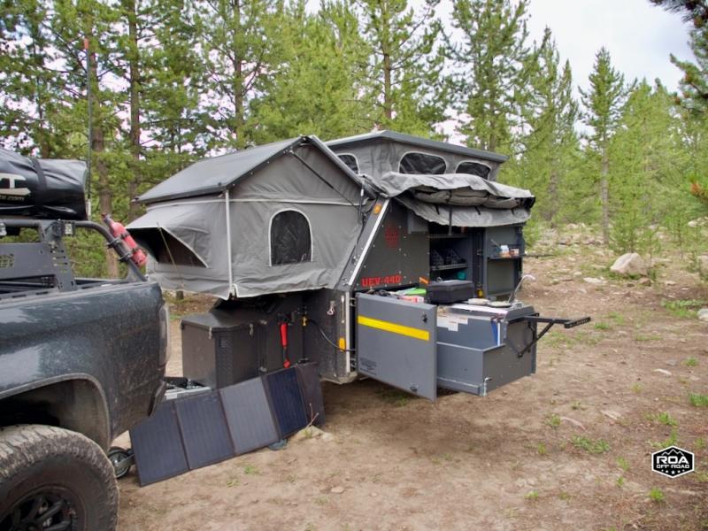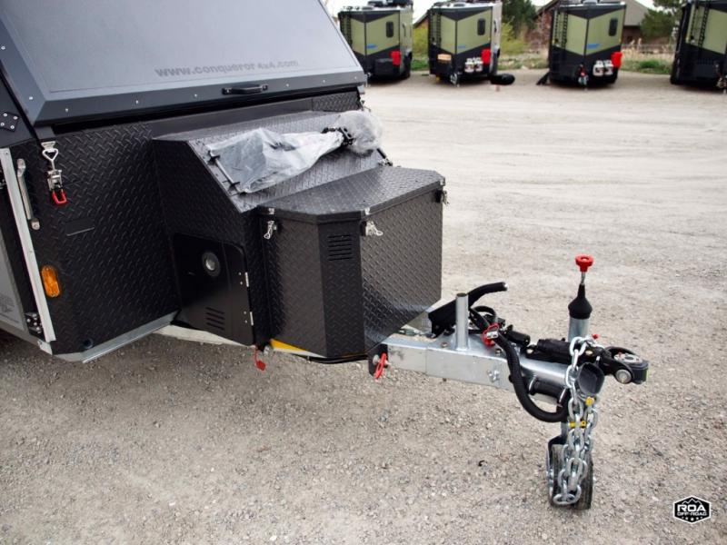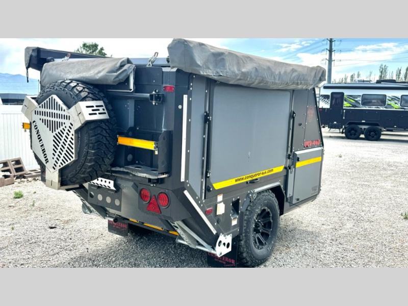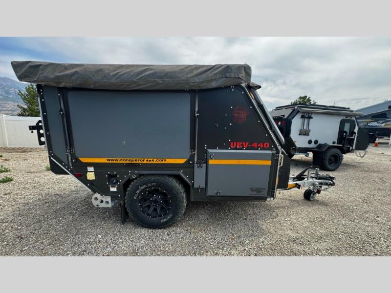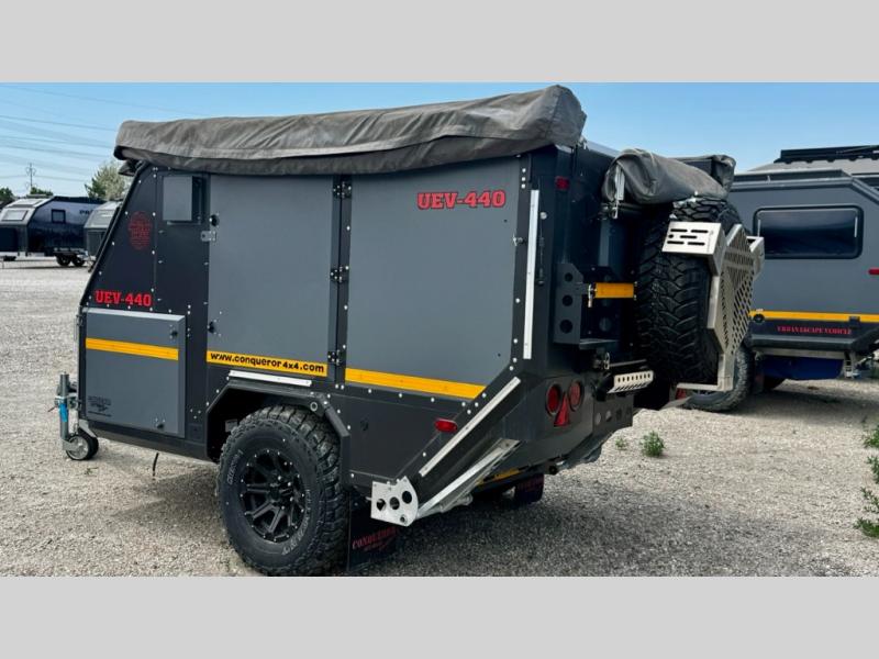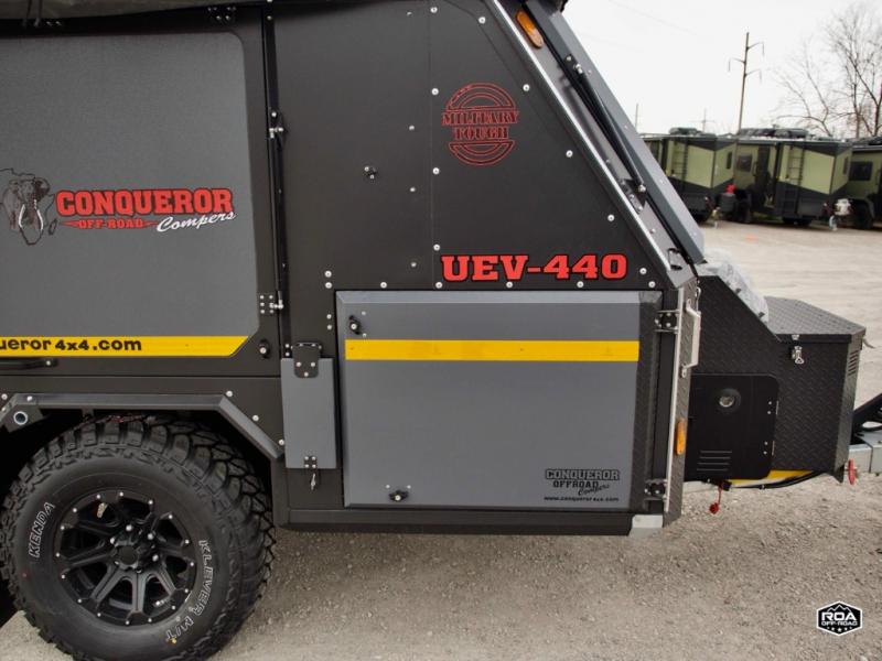We love the 2022 Conqueror UEV-440. This off-road trailer was born in South Africa to handle all the craziest terrain on earth. Lightweight and nimble yet has tons of space to sleep 4, full outdoor kitchen, 38 gallons of water, 200 watts solar etc.What's my favorite part of the Conqueror UEV-440 off-road trailer?hmm, maybe the Airbag Suspension! This gives you 3 main benefits 1) Extremely smooth towing on & off-road 2) Level out the camper with the touch of a button 3) Utilize the on-board air compressor to air up tires and toys!Or Maybe it's the two 180 degree awnings with wall kits to transform this off-road trailer into the ultimate yurt basecamp! In around 20 minutes you can open up both awnings and zip on the walls for a secure and shaded campsite. Whether it's sunny, rainy, windy, dusty, cold, or you'd just like some privacy!Actually, I think it's the insanely comfortable beds! The 5 inch eggshell-topped foam mattresses are easily one of the most comfortable beds in any off-road trailer that I've camped in (and I've camped in a lot!).