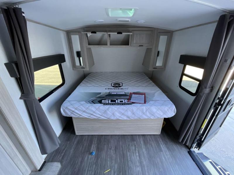 Each one of these Cruiser Shadow Cruiser travel trailers come with convenient features for you to make memories that will last a lifetime! The five sided aluminum framing holds together the Azdel composite laminated sidewalls which will keep your unit from rotting away, plus the surround seal slide system has a rain gutter to aid in keeping water out. Their strong foundation is built with a powder coated structural I-beam frames and three times the amount of required full-height cross members to provide a more solid floor foundation with more attachment points. Travel any time of year with the Extended Season package that includes radiant foil and ducted heating. There is also dual ducted 13,500 BTU A/C to keep you cool and a high BTU ducted furnace to keep you warm. The patent pending full belly pass-through storage area is LED lit so you can see all of your gear and slam latch baggage doors with magnetic latches to keep it in place while you access your items. Come find the perfect model for you today!