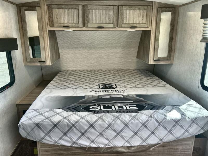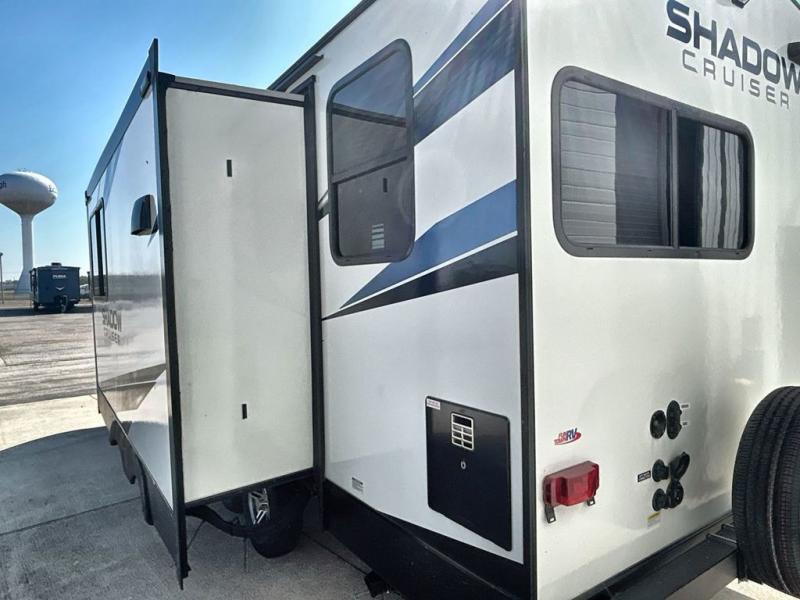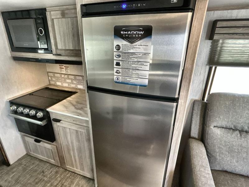 Each one of these Cruiser Shadow Cruiser travel trailers come with convenient features for you to make memories that will last a lifetime! The five sided aluminum framing holds together the Azdel composite laminated sidewalls which will keep your unit from rotting away, plus the surround seal slide system has a rain gutter to aid in keeping water out. Their strong foundation is built with a powder coated structural I-beam frames and three times the amount of required full-height cross members to provide a more solid floor foundation with more attachment points. Travel any time of year with the Extended Season package that includes radiant foil and ducted heating. There is also dual ducted 13,500 BTU A/C to keep you cool and a high BTU ducted furnace to keep you warm. The patent pending full belly pass-through storage area is LED lit so you can see all of your gear and slam latch baggage doors with magnetic latches to keep it in place while you access your items. Come find the perfect model for you today!