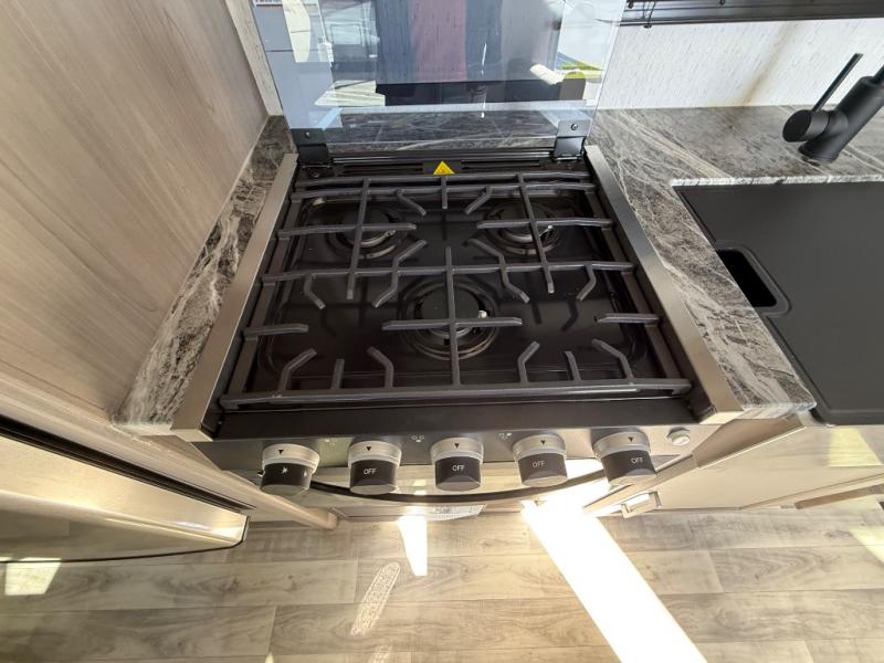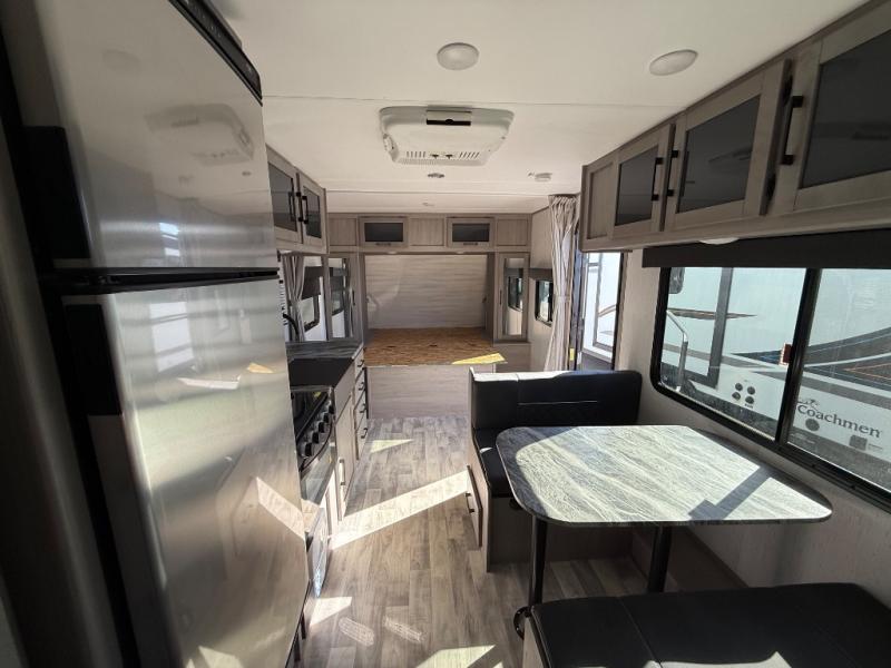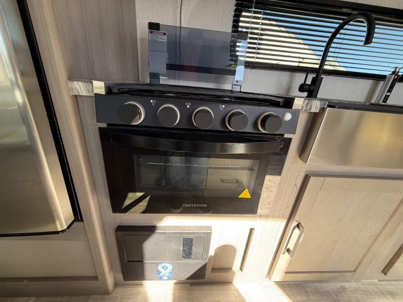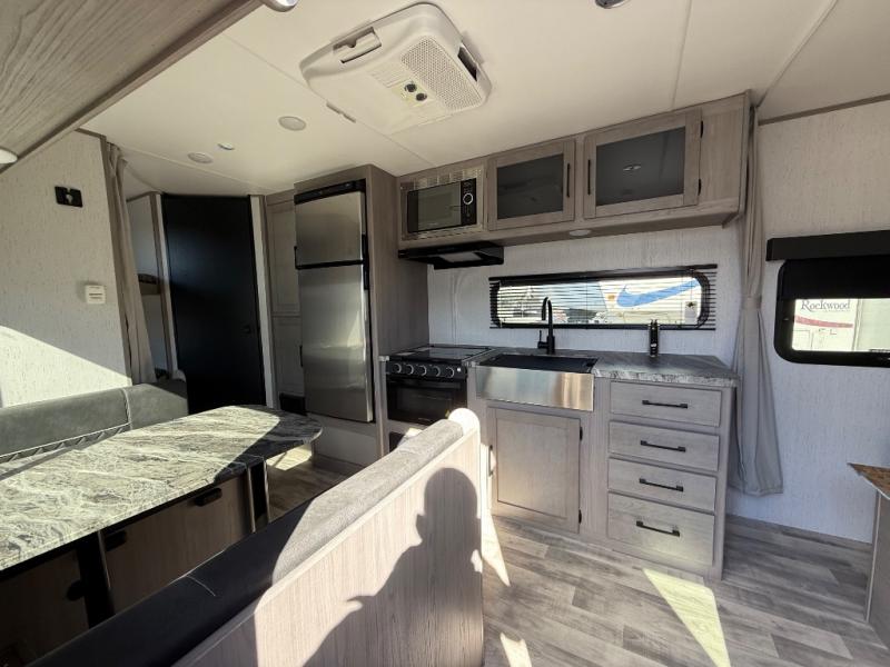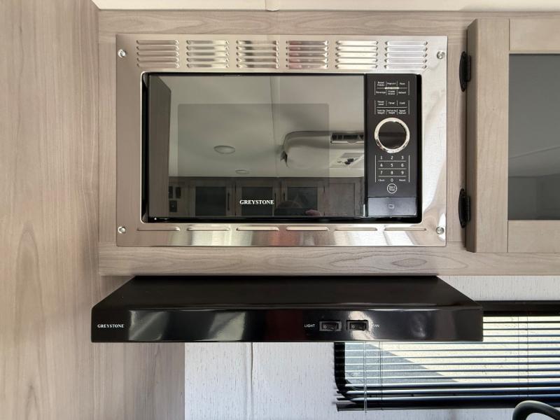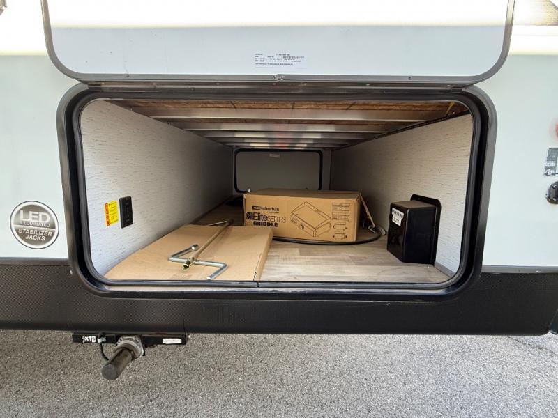 If you're looking for a lightweight travel trailer with more sleeping space, your search is over with this Kodiak Ultra-Lite. When you arrive at the lake, set up the 18' power awning with LED lights, then grab the fishing poles from the pass-through storage. When you return with your catch, you can cook it on the outside kitchen, then head indoors to freshen up in the full bath. The little ones may want to take a rest on the double-size bunks, while the adults enjoy the queen bed up front. This model includes plenty of storage space, including a pantry in the kitchen for snacks!