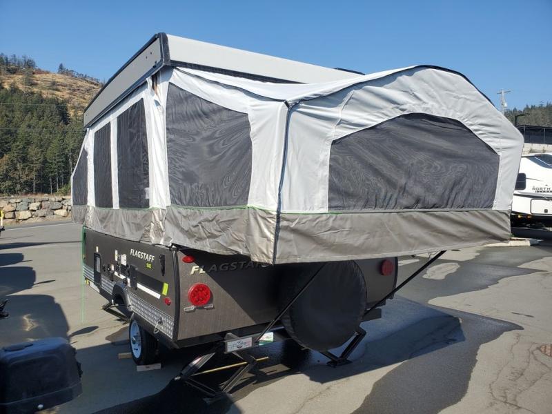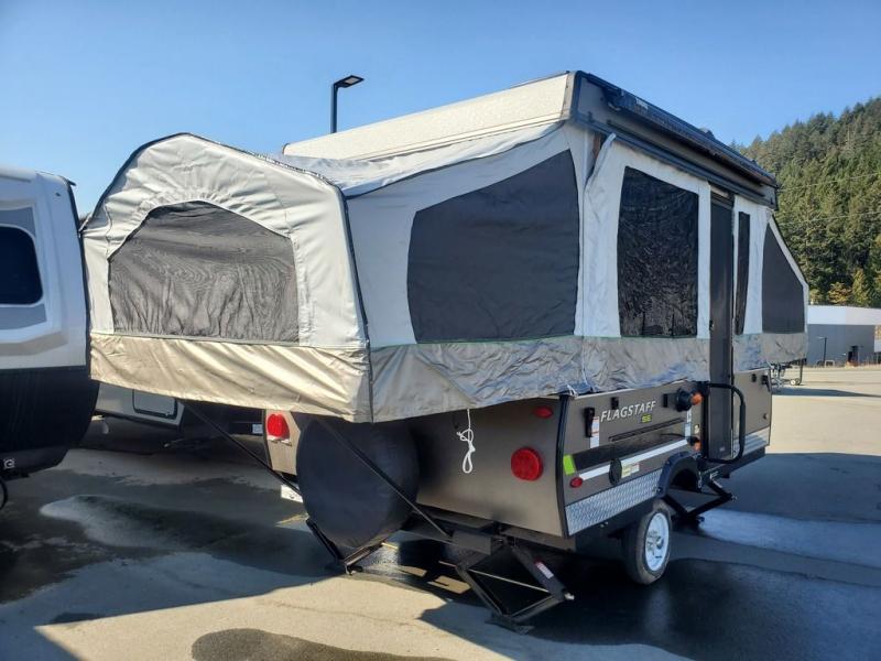 If outdoor sports are the reason you want to get away, then the Forest River Flagstaff SE folding pop-up camper is precisely what you need! These Sports Enthusiast Package (SE) campers have proven that they are sports-friendly and camping-approved. Built with a gray sport exterior, autumn wood interior, wood plank flooring, a black diamond plate, electric brakes, and aluminum wheels with 15" Mud Rover tires, the Flagstaff SE is ready for all sorts of outdoor experiences. There is a power roof lift to make set-up more effortless, and the ProRac permanent crossbars have a 150-LB rating to offer you accommodations for your outdoor gear. And don't overlook the 190W roof-mount solar panel that can be used to provide you with power as you search for a new secluded destination.