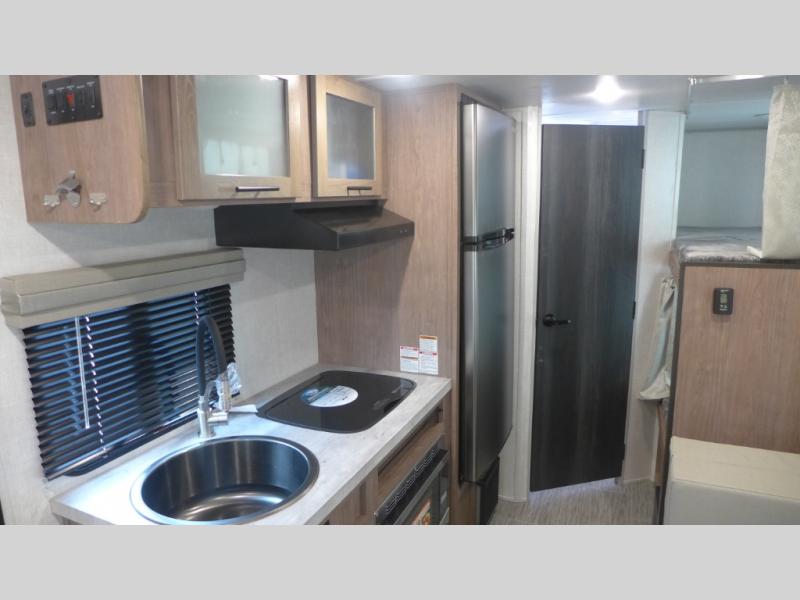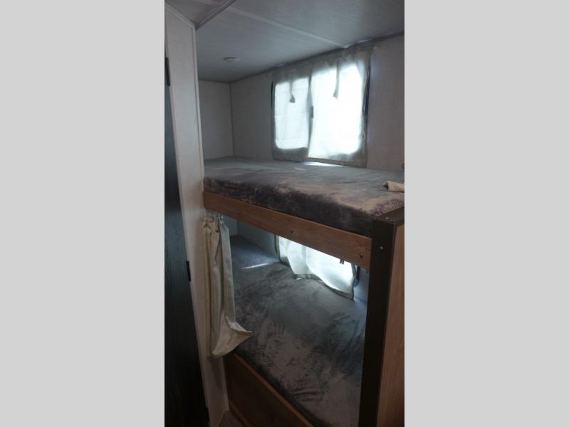 This No Boundaries travel trailer will make your life easier with its bunk beds, chaise lounge, and queen-size bed. Now you can bring along your favorite people without worrying where they will sleep at night. The single slide gives you more space for staying inside and spending time together, and there is an entertainment center that you can use while you're in there. This trailer also has great storage with the bathroom closet, kitchen refrigerator, overhead cabinets, and exterior pass-through storage. You'll also have a 14' power awning that will protect you while you're outside enjoying the weather.