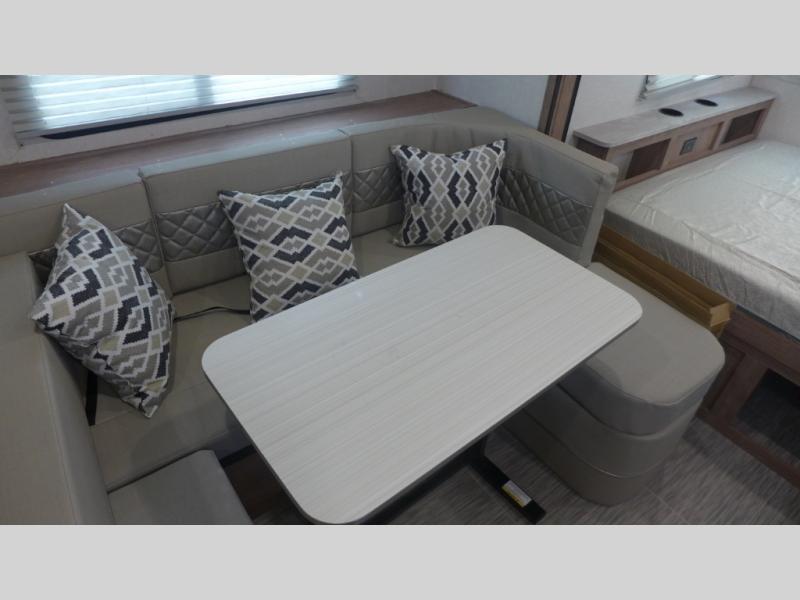 If you want to break free from the travel constraints of standard trailers, then you must choose the Forest River No Boundaries travel trailer or toy hauler because they are rugged and ready for adventure! These trailers offer you a Rhino Rack RVT track to bring along your kayaks or fishing equipment, high-performance vinyl furniture to relax on, a USB charging station to power your electronics, and a Cold Weather Package to keep you warm during the cold season. You'll also have satin matte-finish six-lug wheels wrapped in all-terrain tires for an exceptional ride.