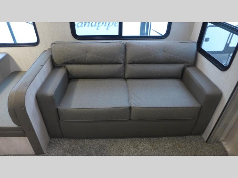 You will find the perfect balance of size, space, features, and luxury with any one of these Forest River Sandpiper fifth wheels! They are constructed with a welded aluminum framed vacuum bonded laminated superstructure, a cambered powder coated frame with rust prohibitor, and a fully enclosed underbelly to protect the units vitals during any season. The large tinted windows come with a 80/20 UV prohibitor and the unobstructed pass-through storage area is big enough to store all of your outdoor gear. You will be able to see clearly even outside at night with the porch light that has an interior switch and the One Touch Dometic electric awning with a LED light strip. The interiors are designed with modern décor, rustic wood plank linoleum, and stainless steel appliances. Don't pass up your chance to camp in true luxury, come find your model today!