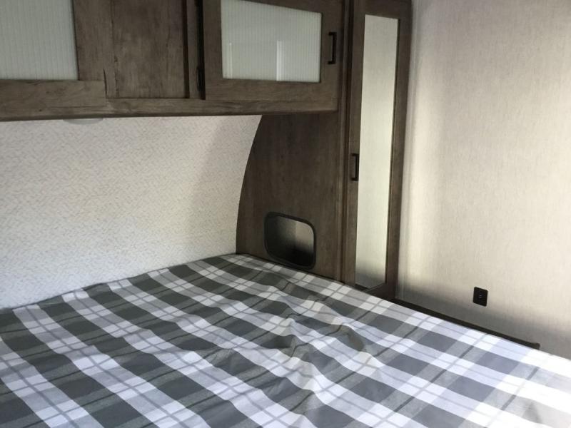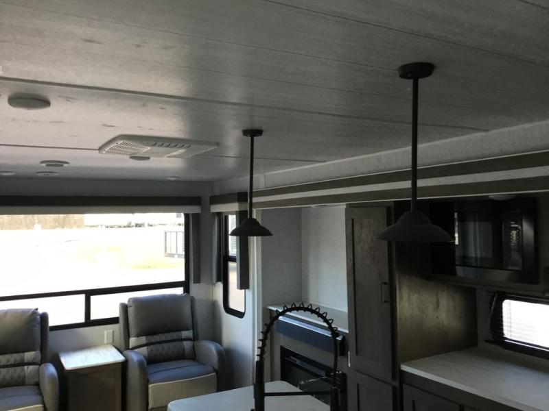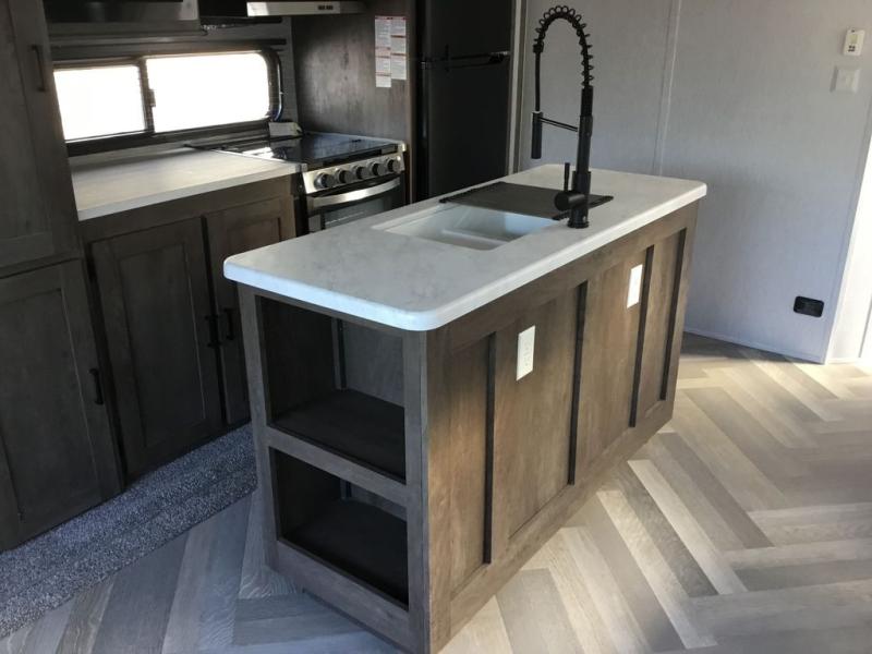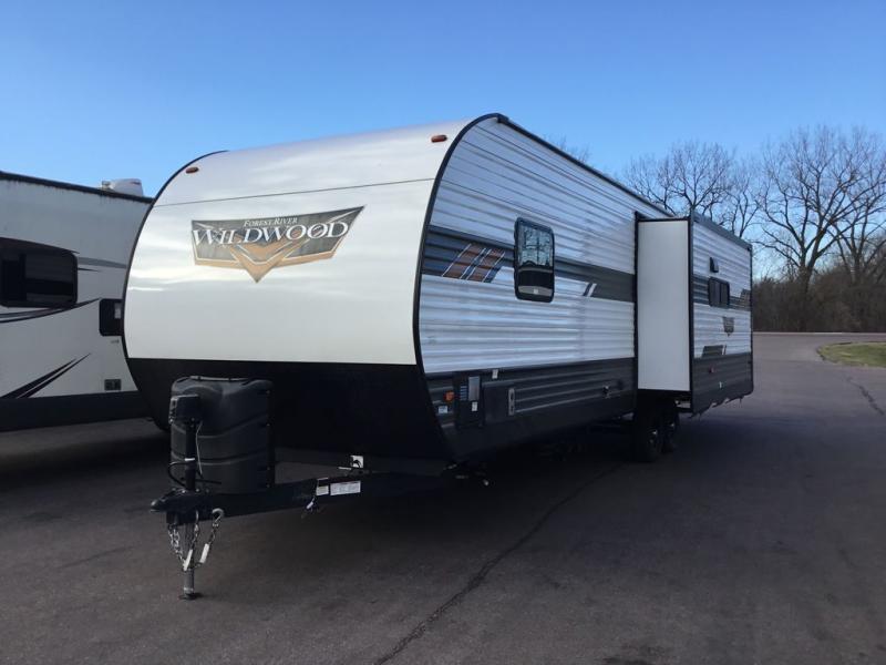 Forest River offers you the highest quality and the best components in its Wildwood travel trailer! The fully walkable one-piece roof is ultra reliable, and the rest of the construction is just as dependable with the powder-coated I-beam frame, cambered chassis, R-7 fiberglass insulation, nitrogen-filled tires, and triple-seal slide-out system. The Wildwood is not only full of quality, but it is also full of style with its herringbone luxury vinyl flooring, upgraded designer furniture, high-gloss exterior metal, and seamless countertops. The Wildwood also comes with some extra features that will make your life more comfortable, like the exterior speakers with blue LED light, the tablet-compatible USB ports, the residential vanity with shower caddy, and true stabilizer jacks with JT's Strong Arm.