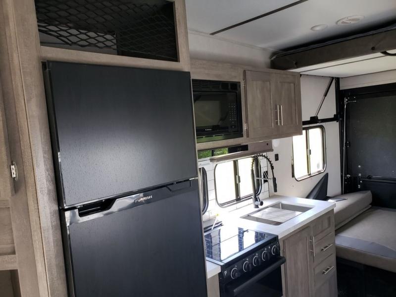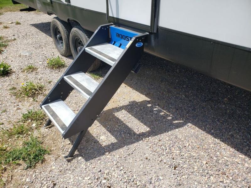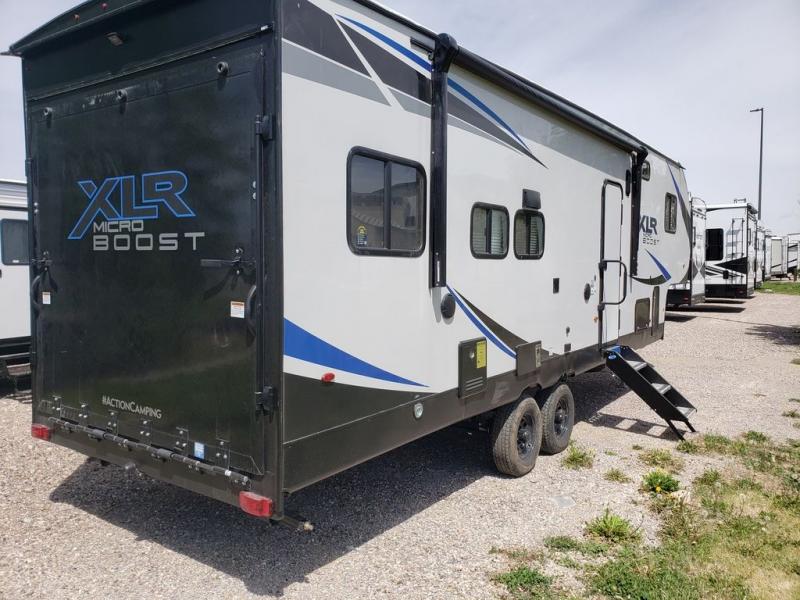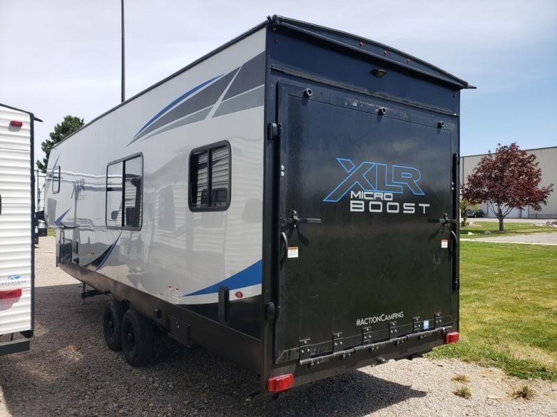 Each XLR Micro Boost toy hauler is made to last through years of use thanks to the seamless PVC roof system, the diamond plate front rock guard, and the Body Armor enclosed and insulated underbelly. You will appreciate the oil and gas resistant residential linoleum and the moisture barrier floor enclosure to keep your space clean, and the lightweight design will be perfect for smaller tow vehicles. Each model includes residential stainless steel sinks, decorative kitchen backsplash, solid core cabinet stiles, and large panoramic windows for breathtaking outdoor views. The exterior includes many convenient features to make camping easier than ever, including a pet leash for your furry friends, insulated storage doors, a hot and cold exterior shower, plus a friction hinge entry door. There is even a power awning with blue LED lights and two exterior speakers for the ultimate outdoor living space.