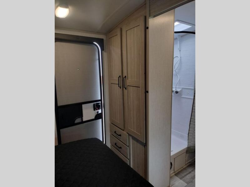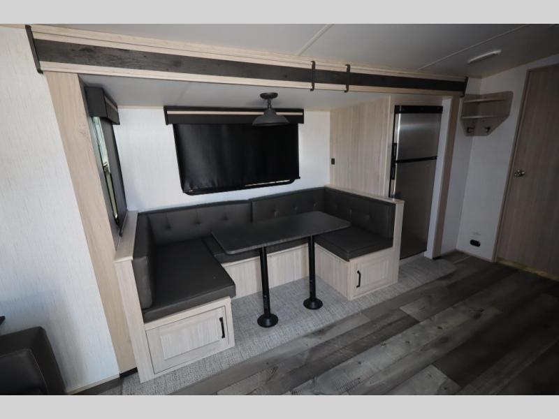Spacious slide + U-dinette + walk-through bath = the perfect couples’ coach with room to relax.