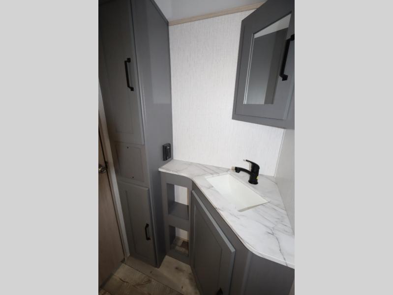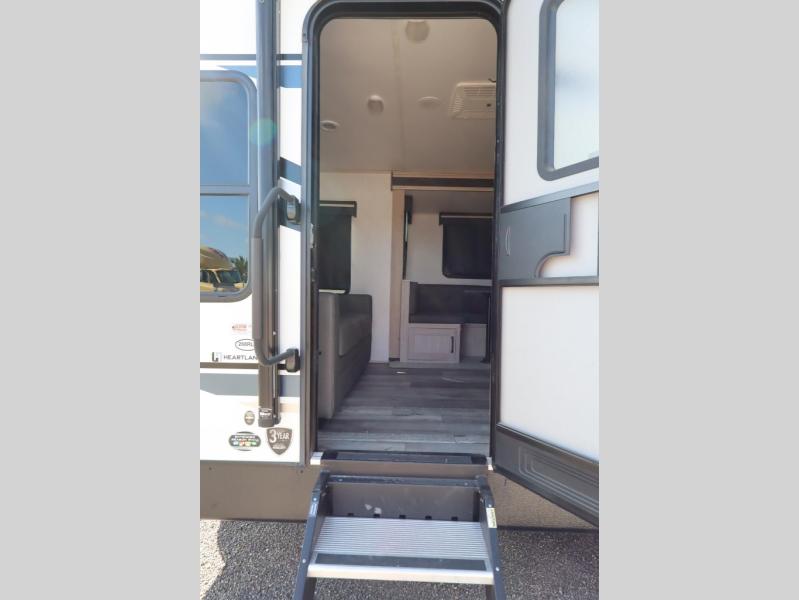 The Heartland Sundance Ultra Lite travel trailers and toy haulers are exceptionally beneficial for a family who is just starting out in the RV lifestyle. Each unit is constructed with an enclosed underbelly, a painted fiberglass front cap with LED lights, a walkable aluminum trussed barrel roof, and a rack and pinion power slide out. You'll have a spare tire and carrier for life's unfortunate mishaps and one unique key for all of your locks with the Keyed Alike system. The interior offers you woven flooring and residential-style furniture for a long-lasting traveling companion. You can use the outside spray port with hose and sprayer for cleaning or hosing down the campsite.