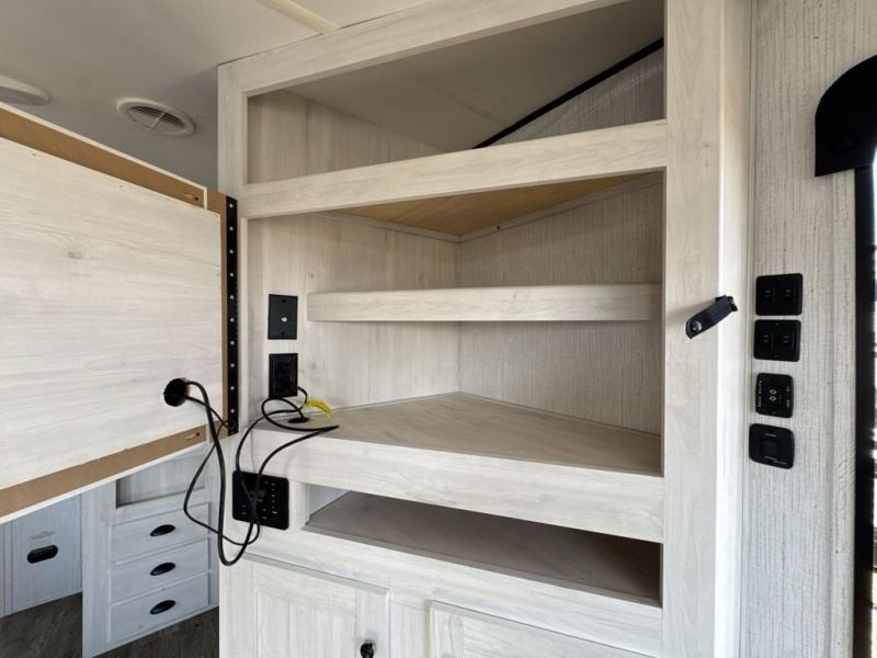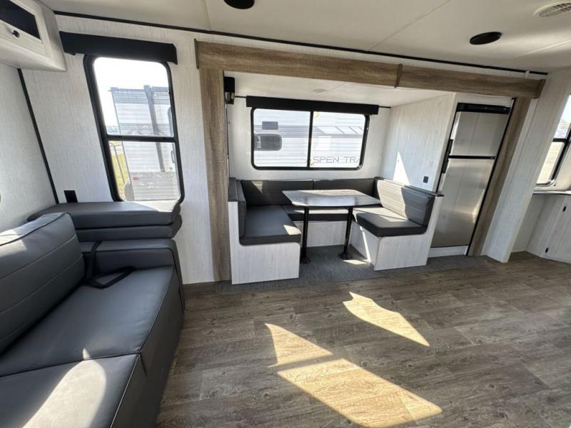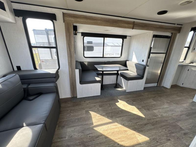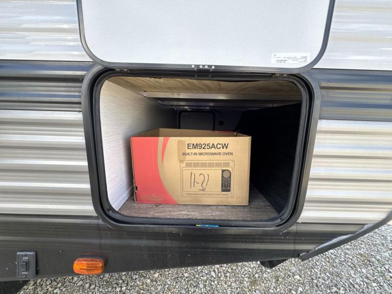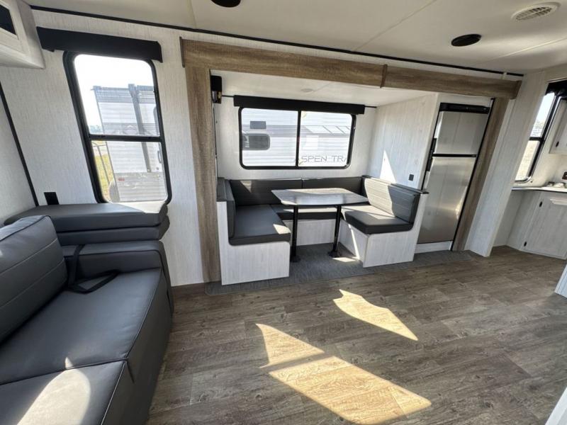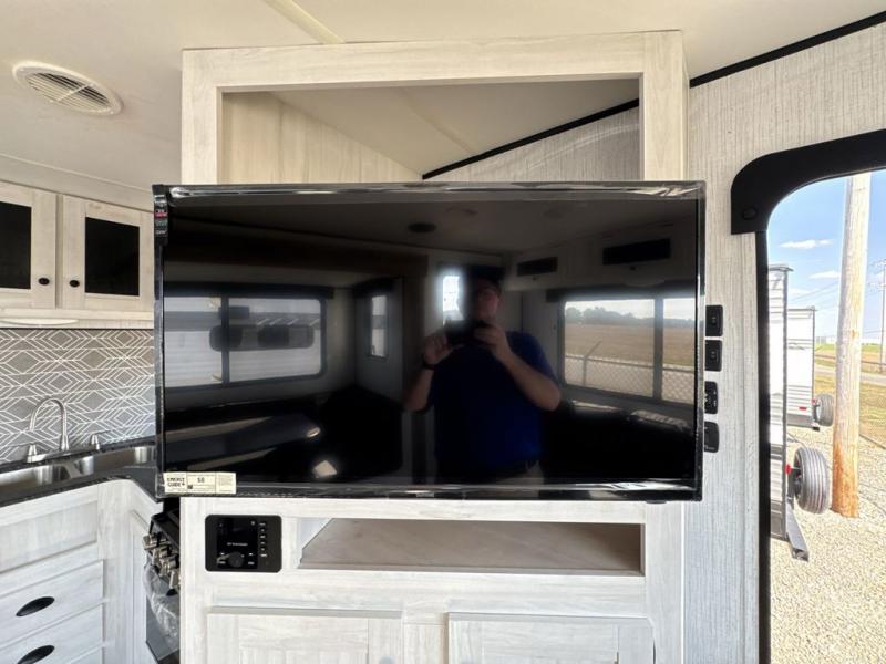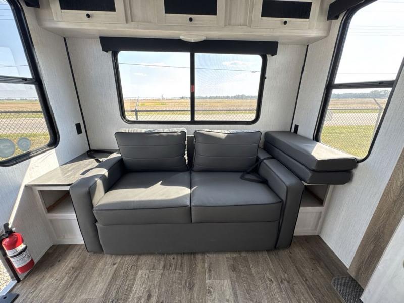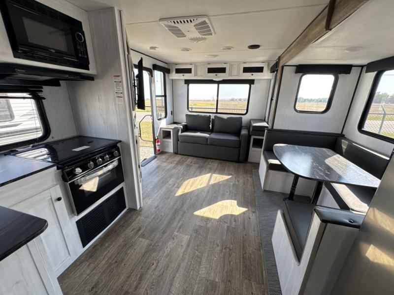 With dual entry doors, you will experience a smooth flow of traffic in and out of this travel trailer! One of the entrances even leads directly into the front master suite with a queen bed that has under-bed storage and wireless cell charging stations, plus an entrance into the walk-through bathroom. Prepare your best home cooked meals with the three burner cooktop and 10 cu. ft. stainless steel refrigerator then enjoy them at the U-shaped dinette slide. Relax each evening on the rear sofa across from the optional LED HDTV if you chose to add it or head outside to relax underneath the 20' power awning with LED light strip to highlight the good times!