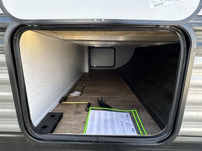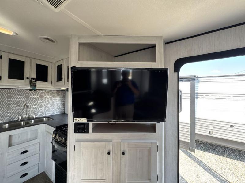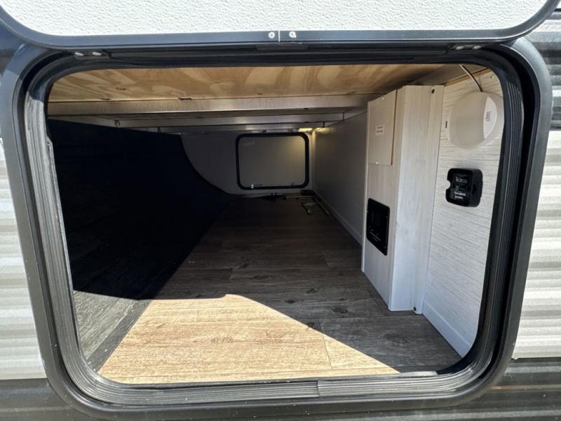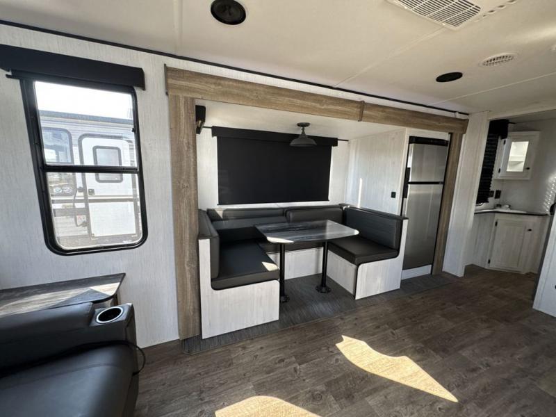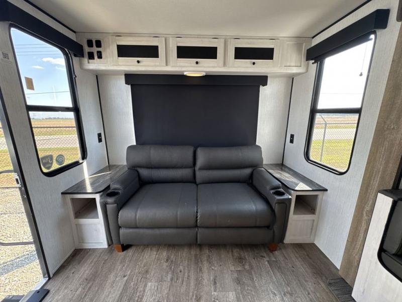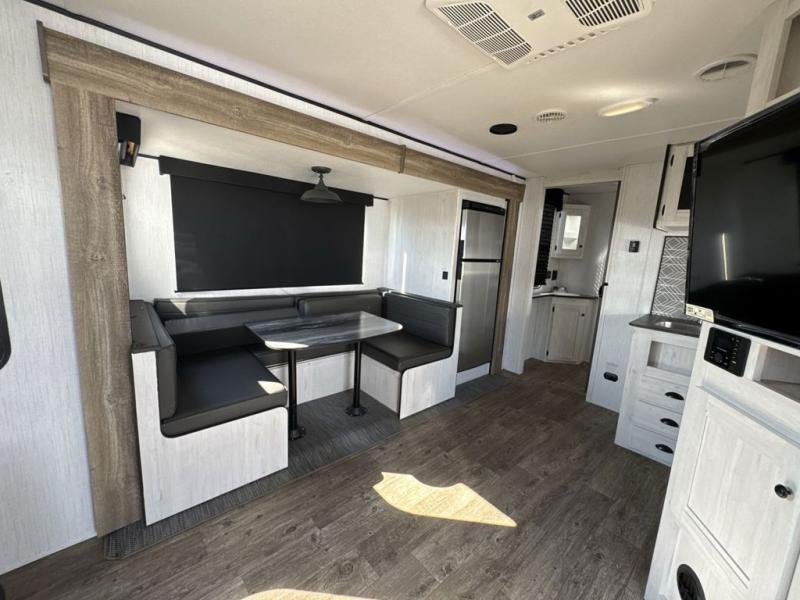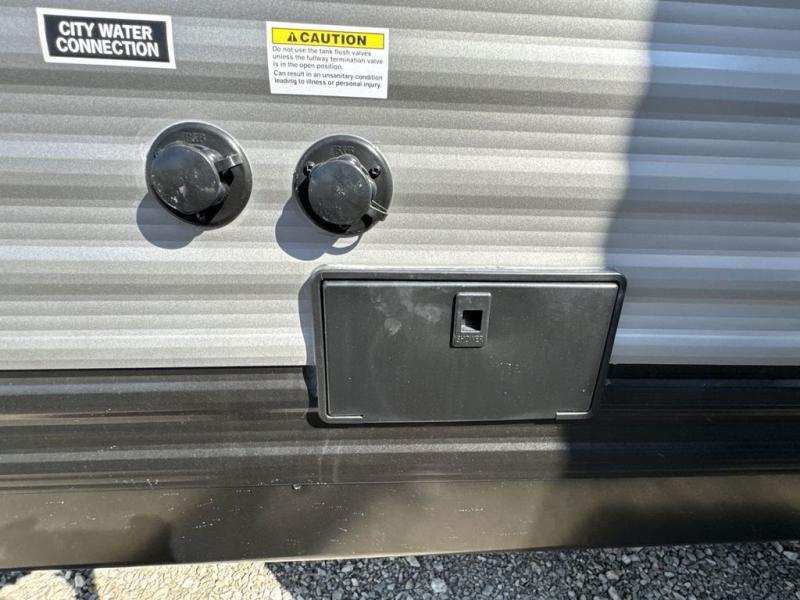 With dual entry doors, you will experience a smooth flow of traffic in and out of this travel trailer! One of the entrances even leads directly into the front master suite with a queen bed that has under-bed storage and wireless cell charging stations, plus an entrance into the walk-through bathroom. Prepare your best home cooked meals with the three burner cooktop and 10 cu. ft. stainless steel refrigerator then enjoy them at the U-shaped dinette slide. Relax each evening on the rear sofa across from the optional LED HDTV if you chose to add it or head outside to relax underneath the 20' power awning with LED light strip to highlight the good times!