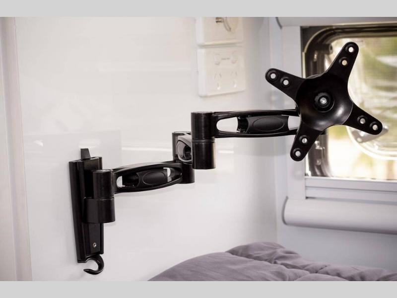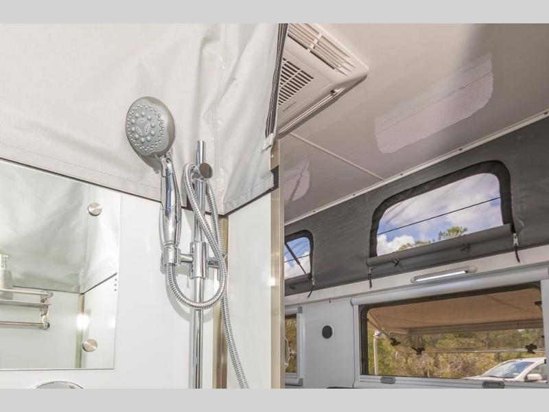 A family of three will enjoy all types of adventures in this off-road trailer! Sleep three with a queen bed in back and a bunk across the front of the unit for one more. Perfect for a child or even an adult. The gourmet slide kitchen outside features a stainless steel four-burner cooktop and sink, pull-out drawers for your silverware and other necessities, a pull-out table for added work space, and all located under the electric power awning for added protection as you cook. There is ample storage both inside and out, and a wet bath for even more convenience. The awning can also be converted into an enclosed annex with the awning wall and floor kit which is great for when the weather isn't cooperating.