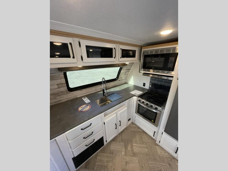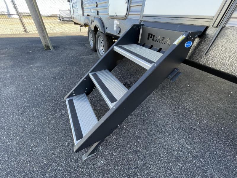If you're looking for family-fun adventure then you need one of these Palomino Puma fifth wheels, travel trailers, or toy haulers! They are built rugged, easy to tow, and jam packed with features. The Darco wrapped underbelly will protect your units vitals through every season and the AlphaPly roofing membrane covers it. They also have super lube axles and a powder coated frame. Their luxurious interiors feature a spice rack and built-in knife rack in the kitchen, USB charging ports to keep your electronics at 100%, and high density foam mattresses for a good night's rest. The required Advantage package comes with night roller shades for privacy at night, two outside speakers to crank up the tunes while you play cornhole, and an outside shower to keep the dirt outside where it belongs, plus so much more!