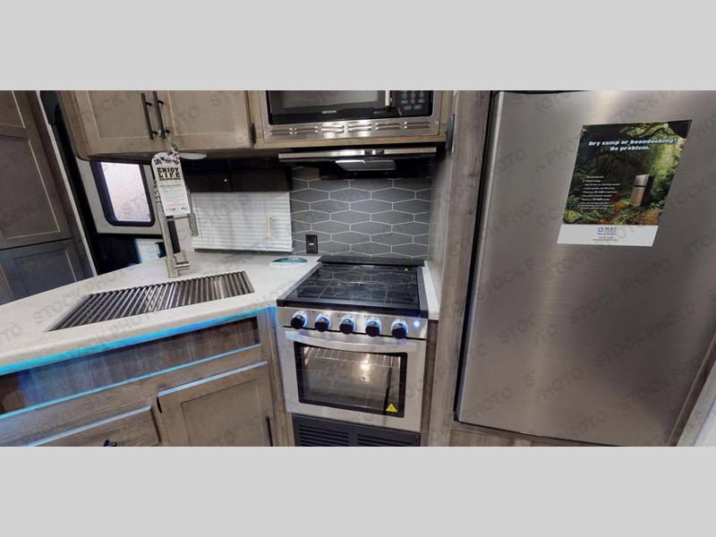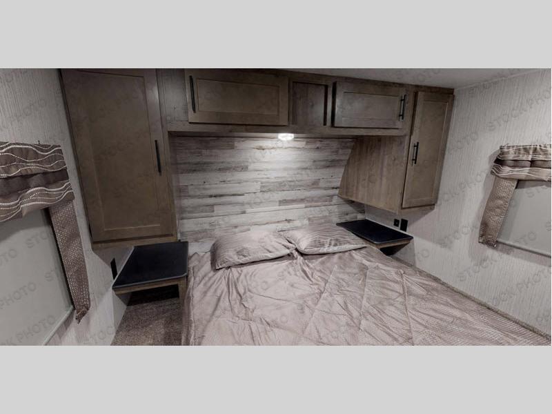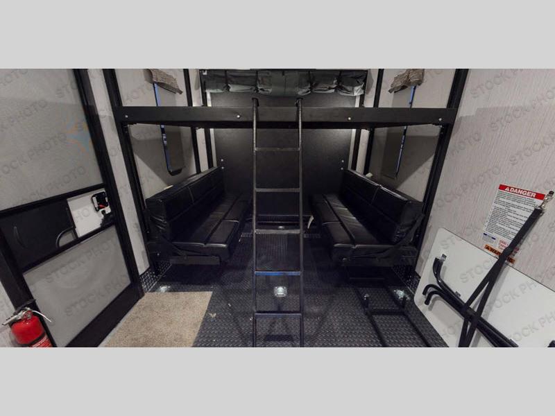You can see and do it all in this spacious toy hauler with a 7' 3" spring-assist ramp door! Once your toys are unloaded from the separate garage, relax on the jack knife sofas, and you can add an optional queen bed electric lift if your guests plan to stay over. The main living area is inviting with its large slide out, booth dinette, and sofa, especially with the 39" LED TV. This model also includes a walk-in pantry everyone will love to grab snacks from! When you're ready to call it a night, clean up in the full bath before heading to the front private bedroom. Here, you'll enjoy a queen bed, dual nightstands, plus dual shirt closets to keep your clothes wrinkle-free!
