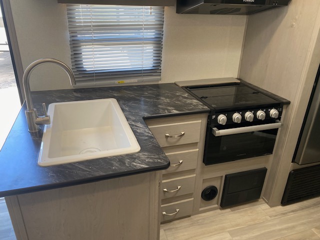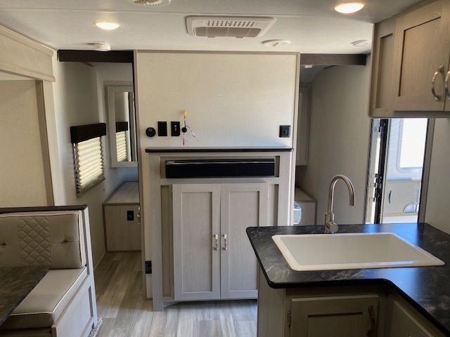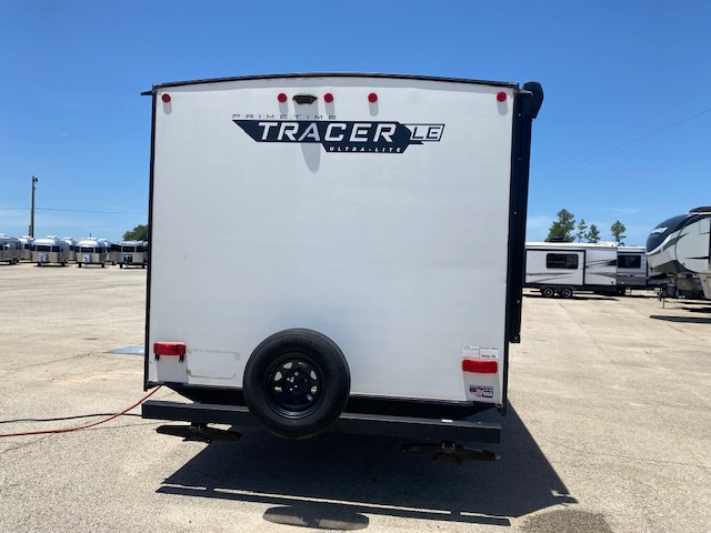 With any Tracer LE travel trailer by Prime Time, you will have Eternabond construction, an enclosed and heated underbelly by radiant and forced air heat to tank compartment for four seasons of travel, a manual tongue jack and stabilizer jacks, plus steel wheels and steel entry steps with an XL grab handle. Inside there is LED lighting, a soundbar, shaker style cabinet doors, and more depending on the trailer you choose!