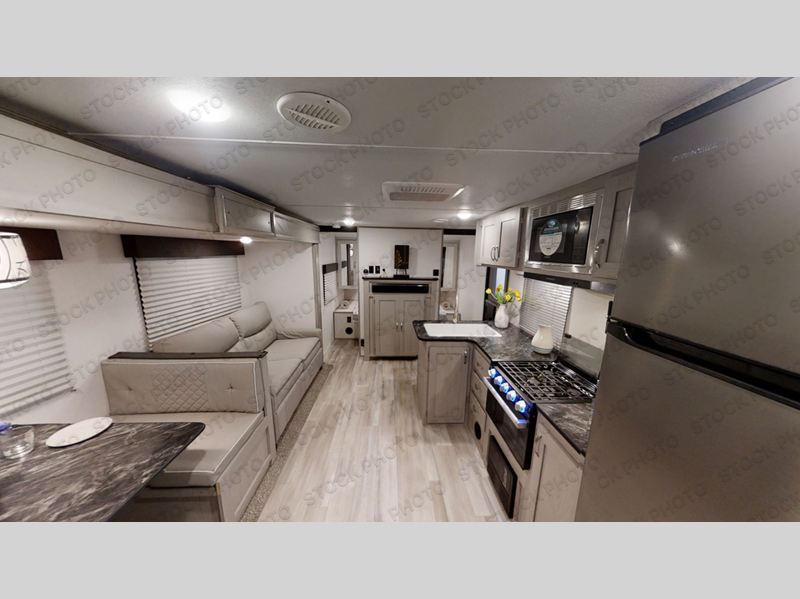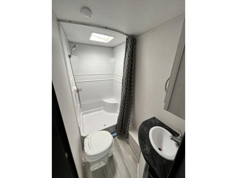 With any Tracer LE travel trailer by Prime Time, you will have Eternabond construction, an enclosed and heated underbelly by radiant and forced air heat to tank compartment for four seasons of travel, a manual tongue jack and stabilizer jacks, plus steel wheels and steel entry steps with an XL grab handle. Inside there is LED lighting, a soundbar, shaker style cabinet doors, and more depending on the trailer you choose!