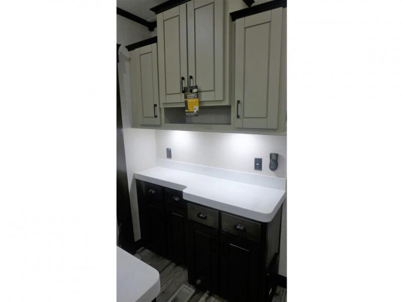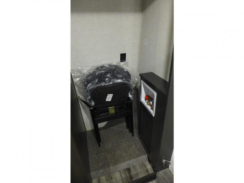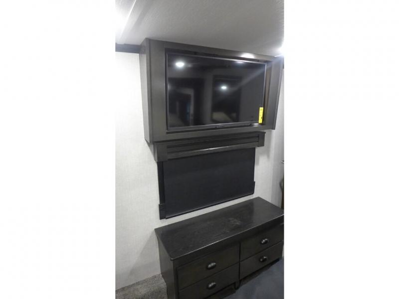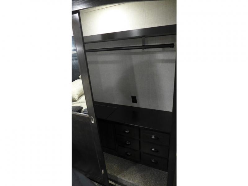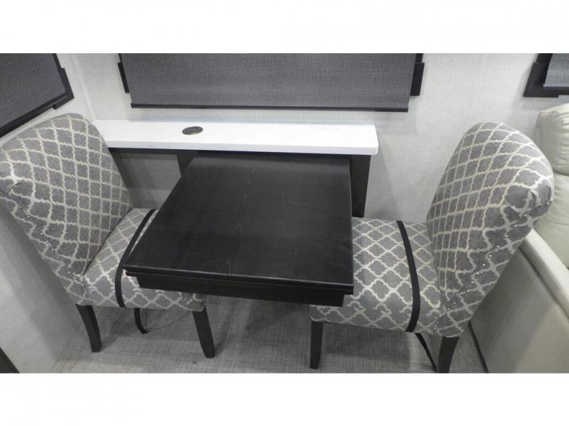 You are going to wish you found the Redwood fifth wheels sooner! With all of the residential comfort and modern luxury, you will be impressed. The Williamsburg Furniture Collection includes two premium dinette chairs, a buffet-style adjustable dinette with leaf extension, a residential-style sofa, and powered theater seating. The luxury further extends to the bedroom where you will find a gel-foam king bed with tilt and C-PAP shelves on both sides of the bed. The straight roof line gives a luxury profile, and there are preparations for a wireless backup camera as well as solar power. The seamless residential insulated heat ducts will efficiently heat your unit, and there is an exterior radio in the fully finished and heated pass-through with slat board storage.