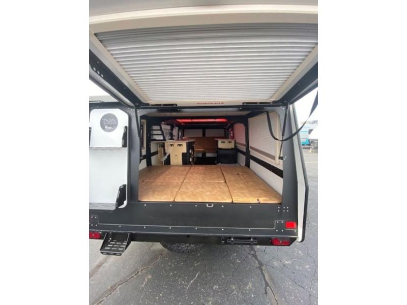 For lightweight towing in a spacious travel trailer, take a look at the Mantis by TAXA Outdoors. The all-terrain tires are ready for rugged excursions, and the four stabilizer jacks will make set-up a breeze once you reach your destination. There is a rear ladder that gives access to the rooftop cargo storage, and you'll appreciate the exterior shower with hold and cold water to wash off sand from the lake. Inside, you'll find 12V USB outlets, LED lighting with a convenient reading light, non-slip seamless Nickel patterned flooring, plus many more comfortable features.