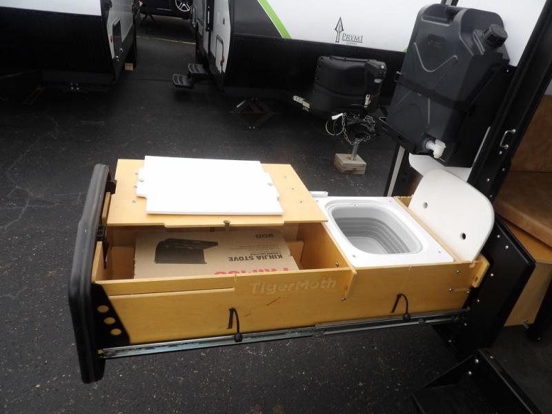 - Baltic Birch Plywood Slide Out Camp Kitchen with Portable Two-Burner Stove