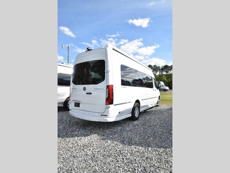 - Sleek Exterior: With its iconic Airstream design and sleek lines, the Interstate 24GL turns heads wherever you go. Built on a Mercedes-Benz Sprinter chassis, this motorhome combines durability with elegance, ensuring a smooth and reliable ride.