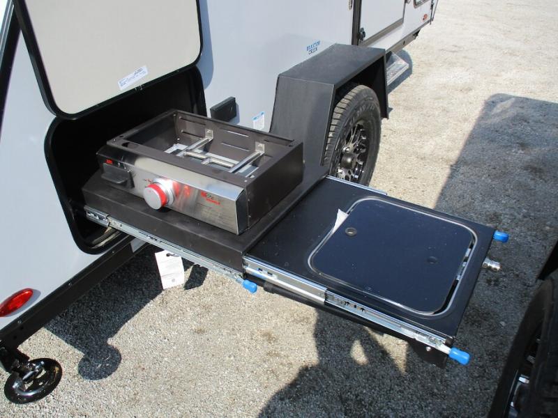Hitch up and hit the road quick and easy with just about any tow vehicle. This lightweight Bushwhacker model is perfect for two with a comfy 60" x 78" mattress for sleeping, and plenty of storage. The outside shower allows you to rinse off any evidence of your daily adventure before going to sleep, and the onboard griddle and sink makes it easy to create some hearty camp meals so you can do it all over again the next day! You will appreciate the A/C unit so that you can be comfortable even on the hottest summer days.