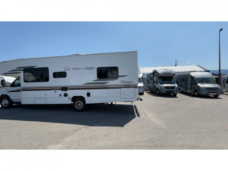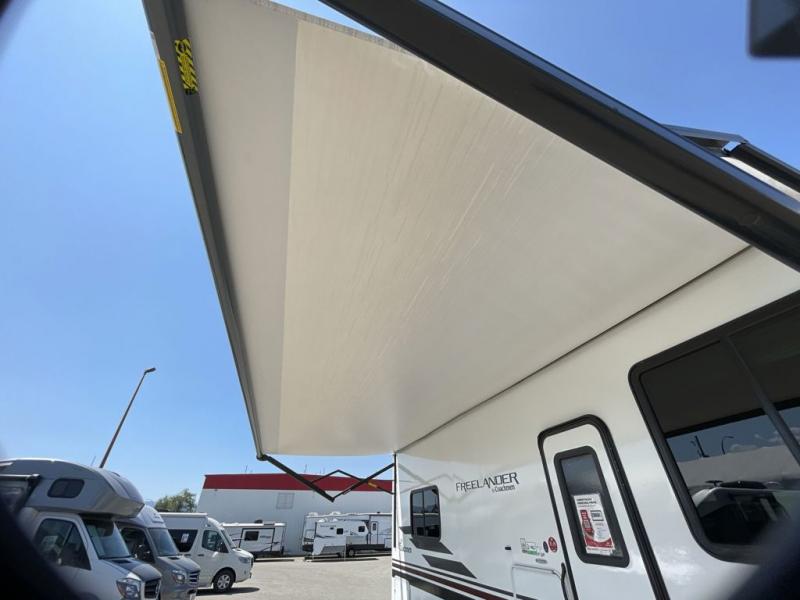 The Freelander Class C gas motorhome by Coachmen is a wonderful choice for anyone looking to get out on the road. A wide variety of floorplans and features offers something for everyone. The Azdel composite sidewalls and CrossFlex PVC polyester reinforced roof material provide a solid structure to enjoy all your trips. Conveniences like an over-door magazine rack with an HDMI and charge station and reclining cockpit seats are standard, along with a rear color backup camera, a premium showerhead and faucet, and one-piece thermofoil countertops. You might like to add the optional Platinum Edition that comes with sideview cameras, upgraded running boards, a convection microwave, and many more features!
