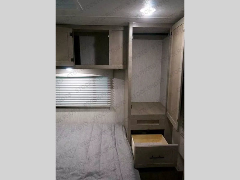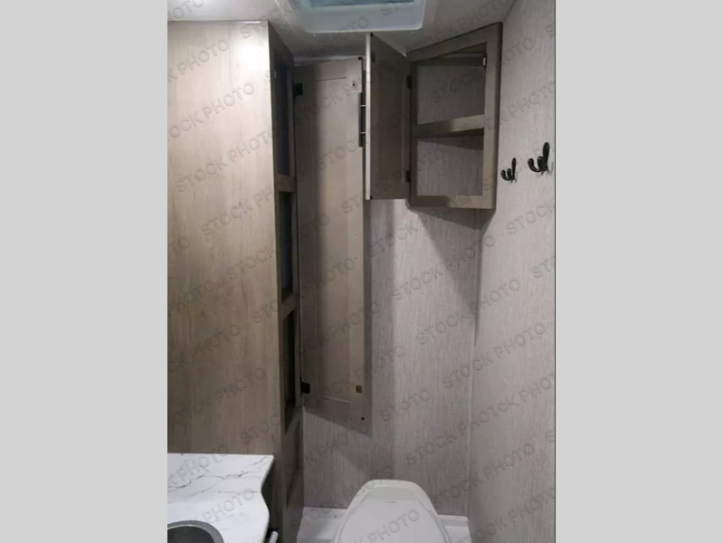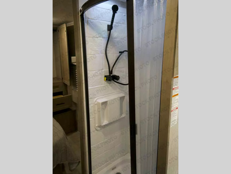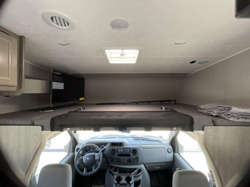 Sneak off for a getaway in this motorhome that has everything you might need! The private rear bedroom has a 60” x 80” queen bed with storage on either side and plenty of room to walk around. The bathroom is split, with the shower on one side and the sink and toilet behind a separate door so sharing is a breeze. Relax up front on either the sofa or the roomy 42” x 71” dinette, with cabinets above for all your supplies. A bunk over the cab provides yet another sleeping area that will be popular with little ones. Time to get out there in the Freelander!