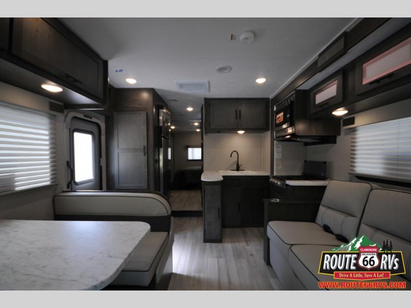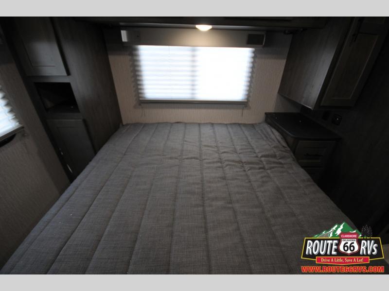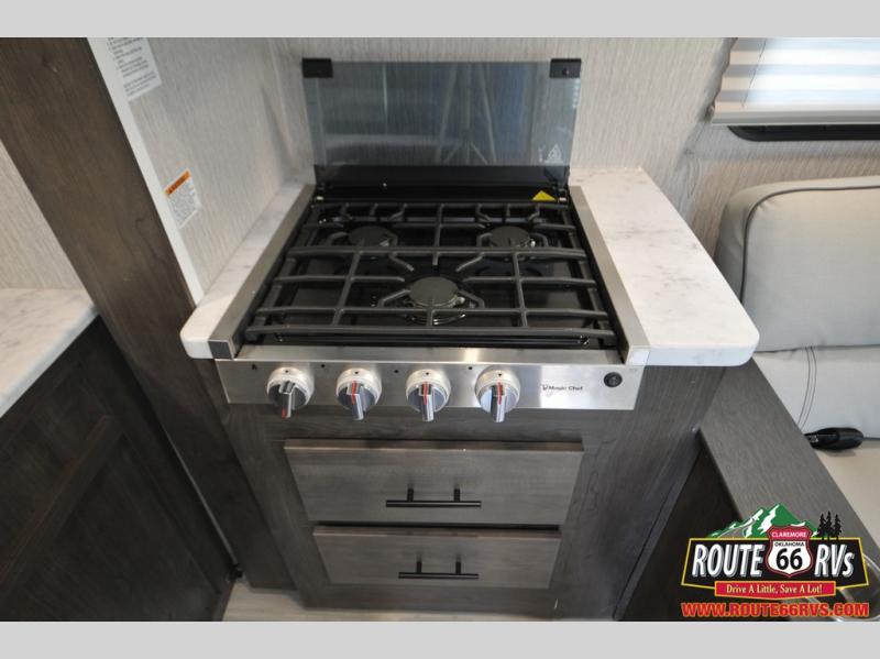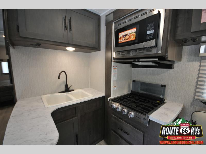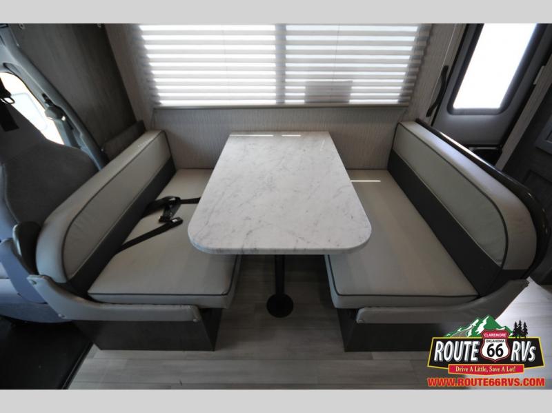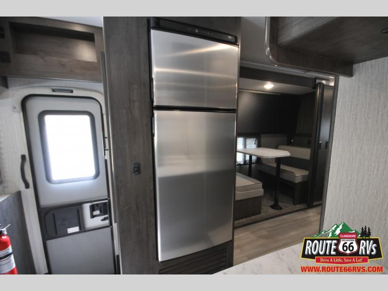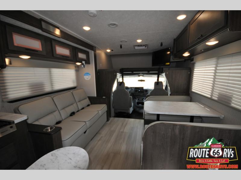 With each Leprechaun Class C gas motorhome by Coachmen you will enjoy "better" interior appointments, like the premium hardwood cabinet doors and drawer fronts, the one-piece thermofoil countertops, and the premium vinyl flooring. You will sleep soundly each night on the upgraded mattress, and staying clean will be easy with the premium showerhead and faucet in the bath. These models include reclining captain's seats, cruise control, and a rear backup camera so you can easily get in and out of the campground. The Leprechaun is constructed with Azdel composite sidewalls, CrossFlex PVC, polyester reinforced roof material, and vacu-bond laminated walls, roof, and floor for a durable motorhome made to last.