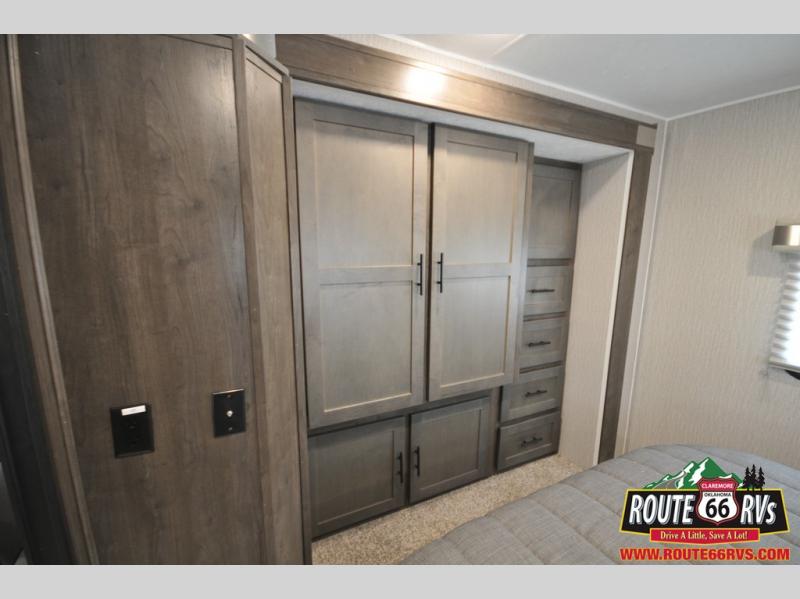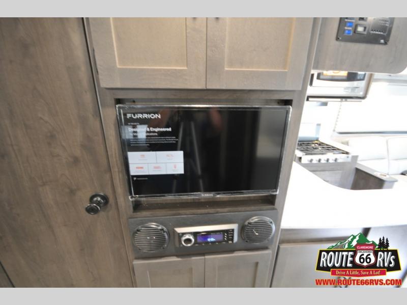 It won't be long before your neighbors start asking to join you on your adventures with this Leprechaun Class C gas motorhome! Because this unit can sleep eight to nine people, you won't have to worry about finding space to house everyone, and since there is a queen-size bed in the back private bedroom, you can sleep separately from the rest of the coach. When you are ready to gather together in the morning for breakfast, all you need to do is simply reposition the 72" sofa and 42" x 71" booth dinette for a place to sit down and eat. The kids can sleep on the flip-down bunk above the second dinette, and they will love having their own bunk area 24" TV with stereo AM/FM/CD/DVD and speakers. This model also includes the CRV Comfort Ride that comes with electronic stability control, heavy duty front and rear stabilizer bars, Firestone Ride-Rite adjustable rear air bags, and more.