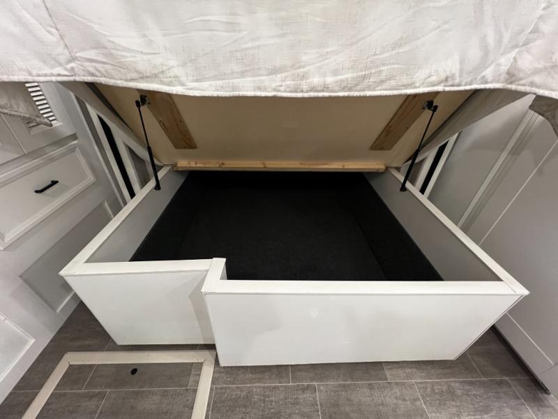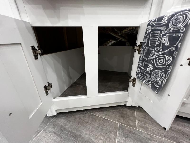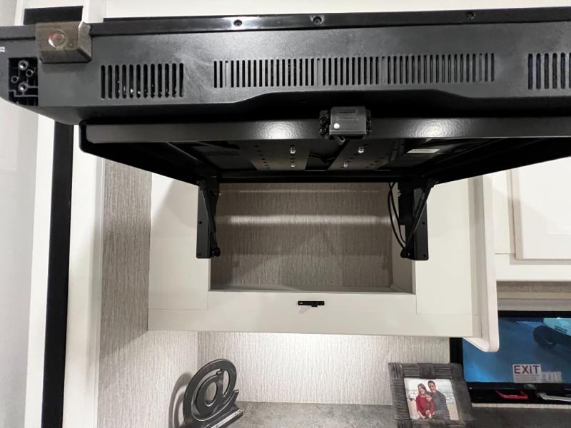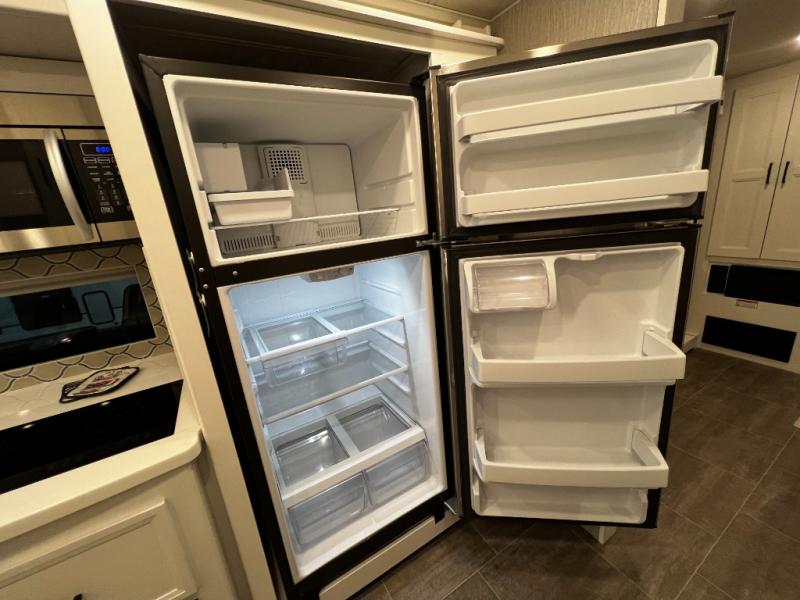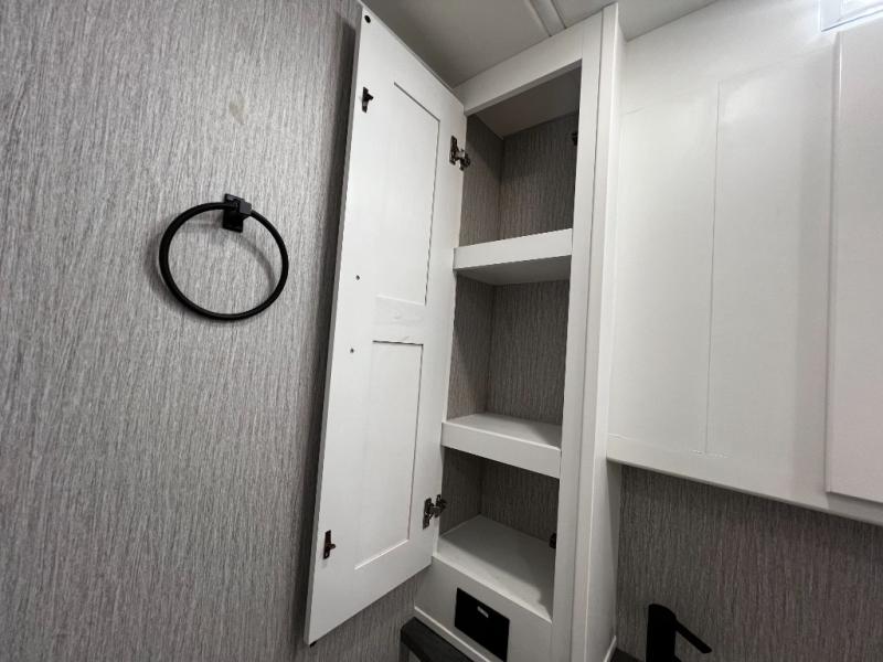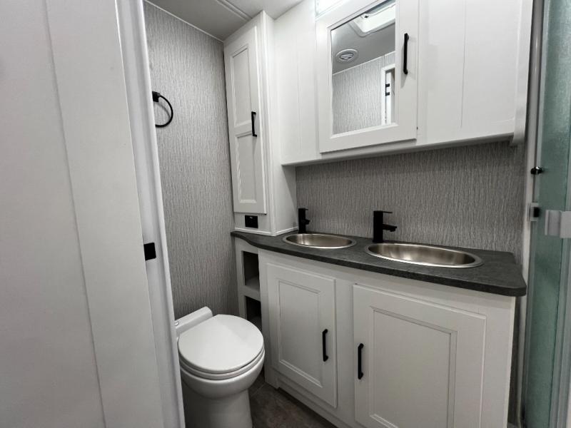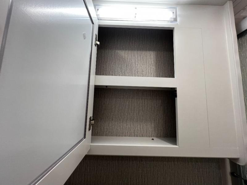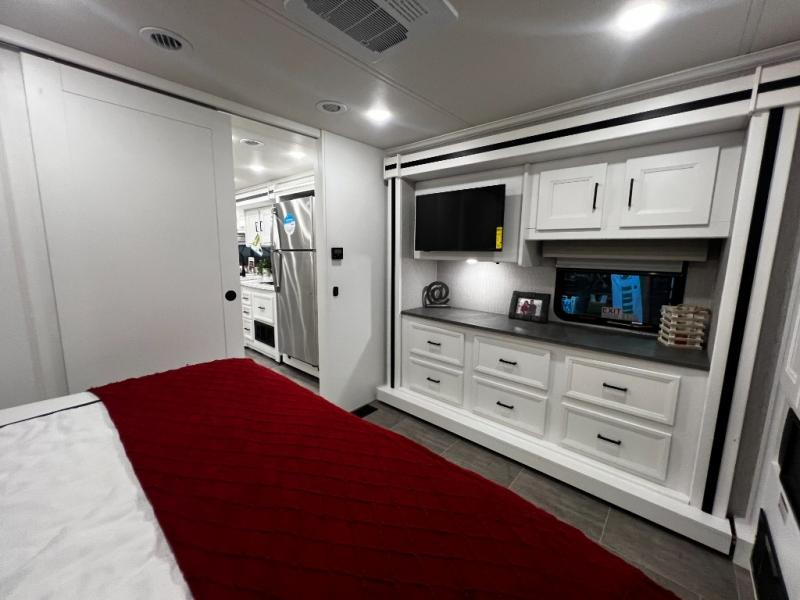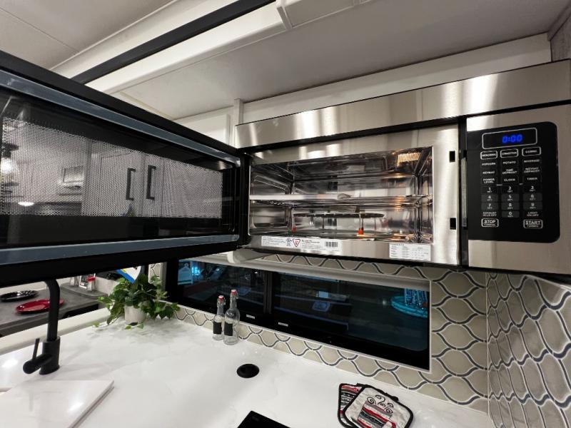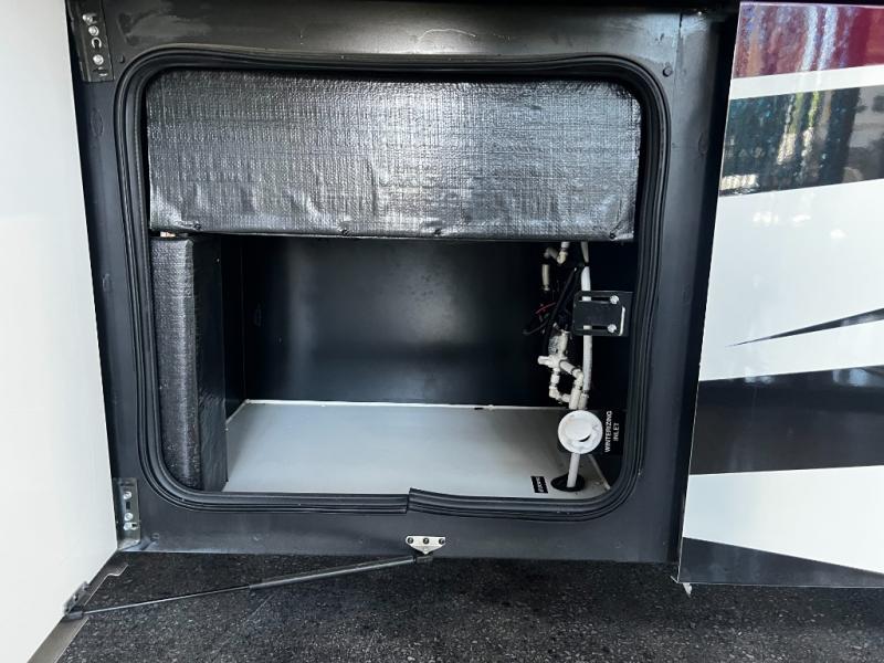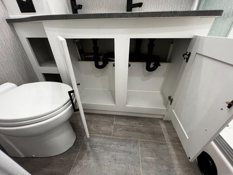 You will love how much space you have in this coach thanks to the four slide outs, plus you can sleep up to six with the added drop-down overhead bunk. Your crew can get comfortable on the 78" sofa by the fireplace and 40" TV, or play a game at the booth dinette. You can choose the optional theater seating in place of the sofa if you don't need the additional sleeping space. This models features a two burner induction cooktop, a convection microwave, plus a pantry for dry goods and snacks. Within the full bath you'll find a deluxe fiberglass shower with a skylight and dual bath sinks that are sure to come in handy when you both need to brush your teeth. The rear private bedroom is designed to make you feel at home with its two wardrobes, king bed slide out, and a 32" LED TV. One of the wardrobes even includes washer and dryer prep to make going full-time easy as 1-2-3!