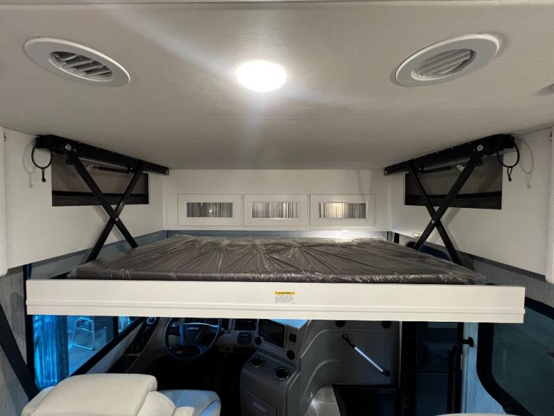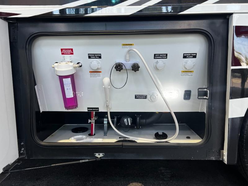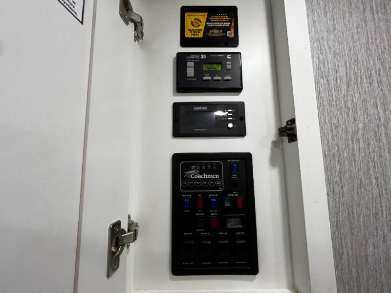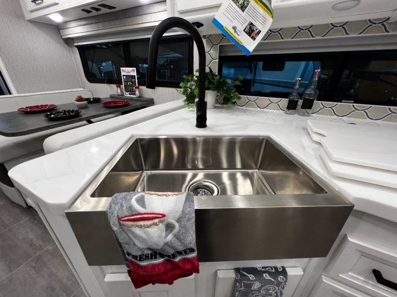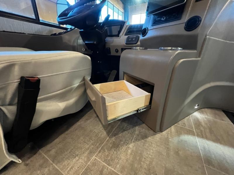 The Sportscoach SRS Class A diesel motorhome by Coachmen sits on a straight rail Freightliner chassis with a 340 HP ISB Cummings rear diesel engine that will deliver power to your excursions. Each coach features chassis air suspension and air brakes, an 8,000 lb. towing hitch, and an outside entertainment center with a 40" TV to watch the big game outdoors. Some of the electrical, heating, and AC amenities you will appreciate are the 6.0 kW diesel generator, the 100 watt solar panel with a controller, and the two 15,000 BTU A/C units. The galley features convenient pop-up recept with USB ports, stylish kitchen backsplash, and a stainless steel farmhouse style sink that will make clean-up easier than ever. Comfort will come easy with the upgraded mattress in the bedroom, along with a residential style headboard and a king bed. Affordable, powerful, and comfortable; what's not to love about the Sportscoach SRS Class A diesel coach!